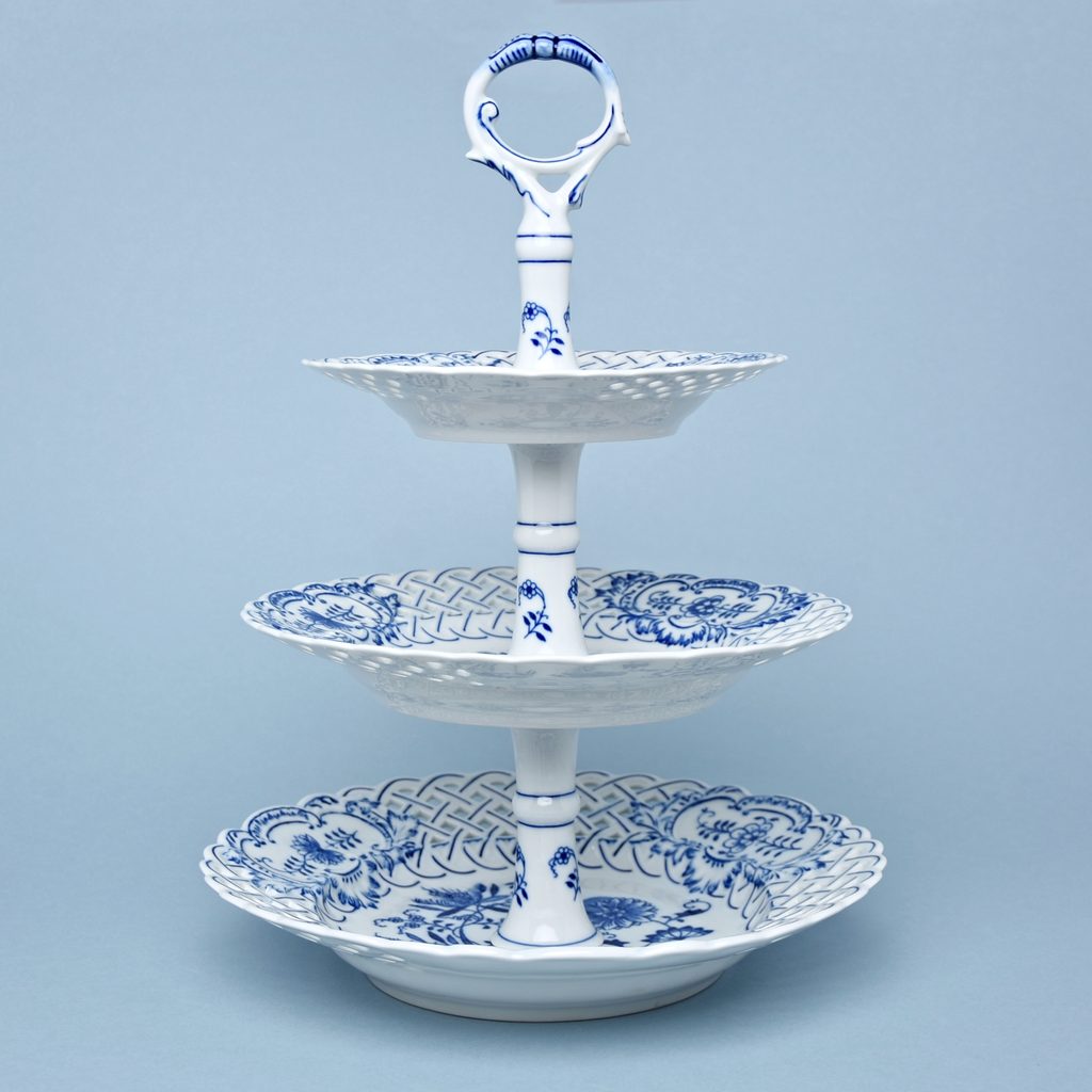 3-compartment dish 18 + 24 + 27 cm PLATES - perforated, Original Blue Onion Pattern