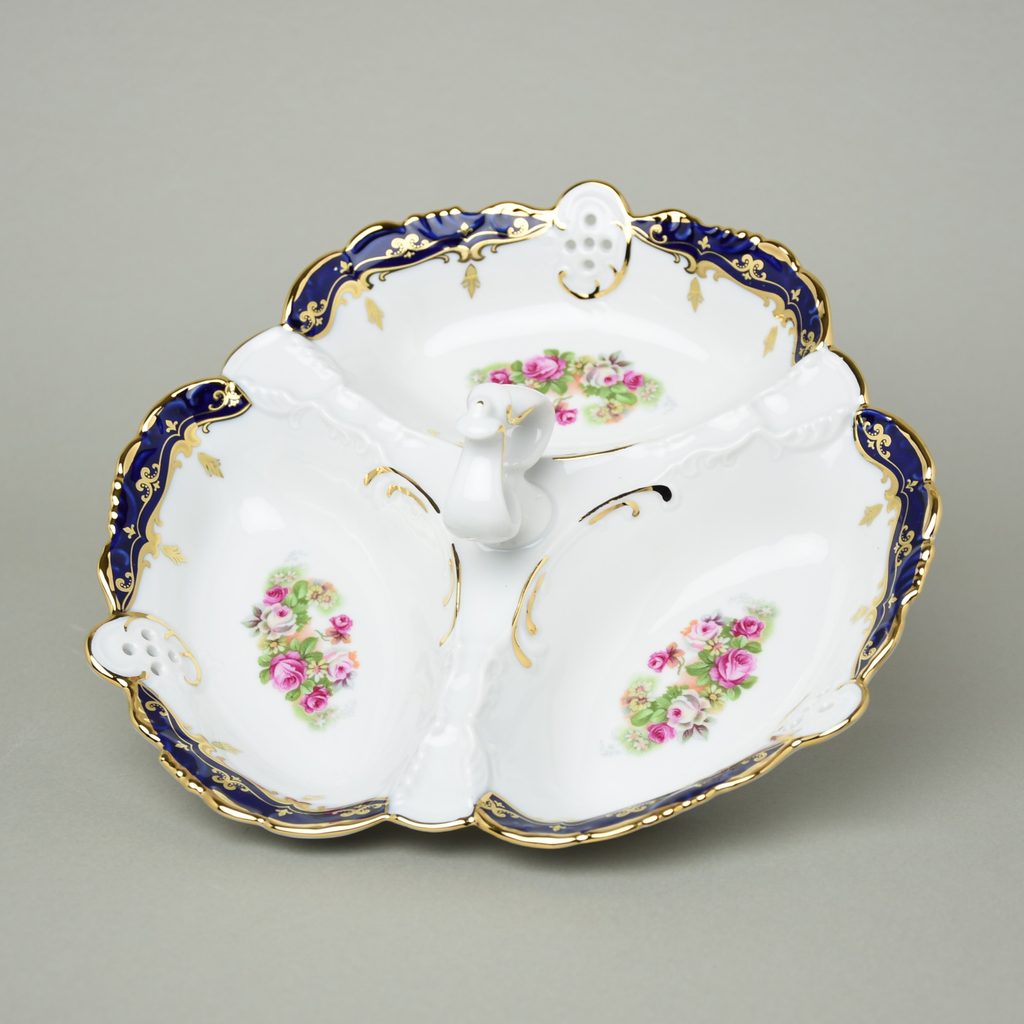 440: Cabaret bowl 23 cm, Diana, cobalt + roses, Leander Loučky