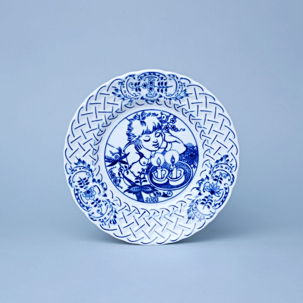 Annual plate from the year 2003 18 cm, relief. Original Blue Onion Pattern in decor from Dubí, Český porcelán a.s.