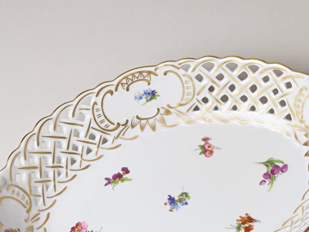 It was already in 1864 when the industrialist from Dubí Anton Tschinkel bought a large building called Lower Forest Mill in present Tovární street in Dubí near Teplice and rebuilt it into a Majolica manufacture. In 1885, the firm O. C. Teuchert from the near Meissen purchased the factory from him and started there production of porcelain in Rococo style with so called “onion” pattern. Its production achieved an extraordinary success and interest of customers which can be seen from the number of parts of the set; in 1929, when the factory was owned by Artur Bloch, it included 257 shapes and until 1956, it was marked with designation MEISSEN in an oval frame.