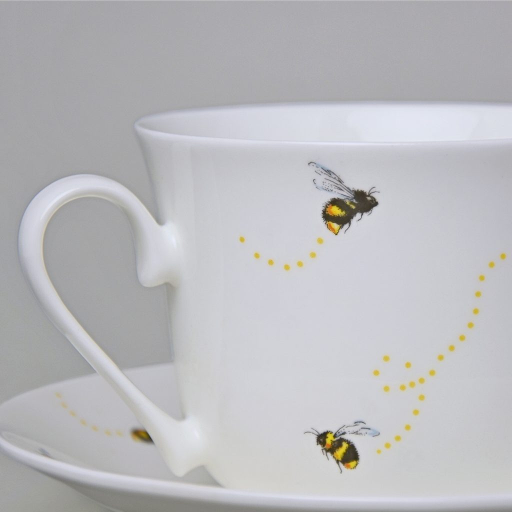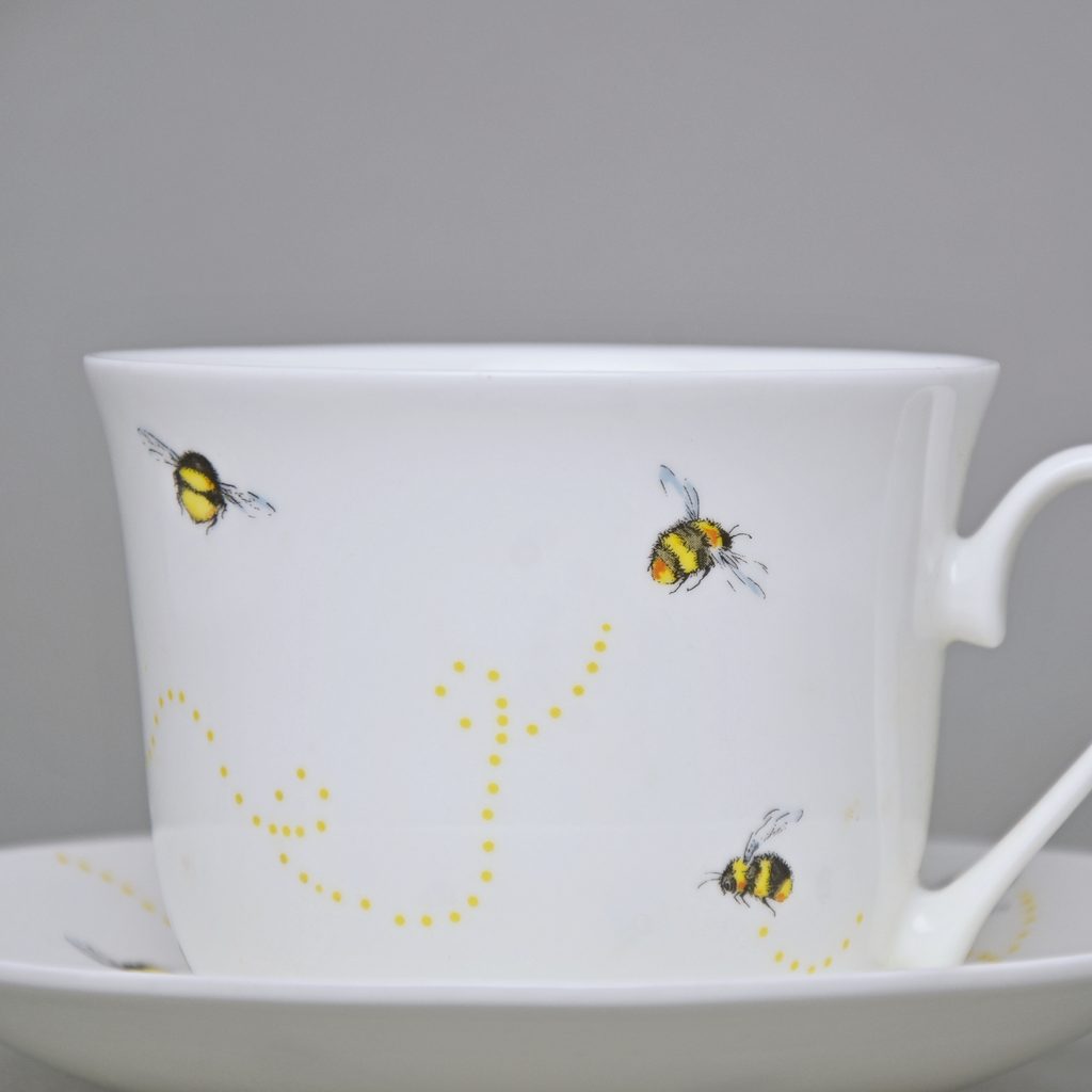 Bees: Cup 420 ml plus saucer breakfast, Roy Kirkham fien bone china