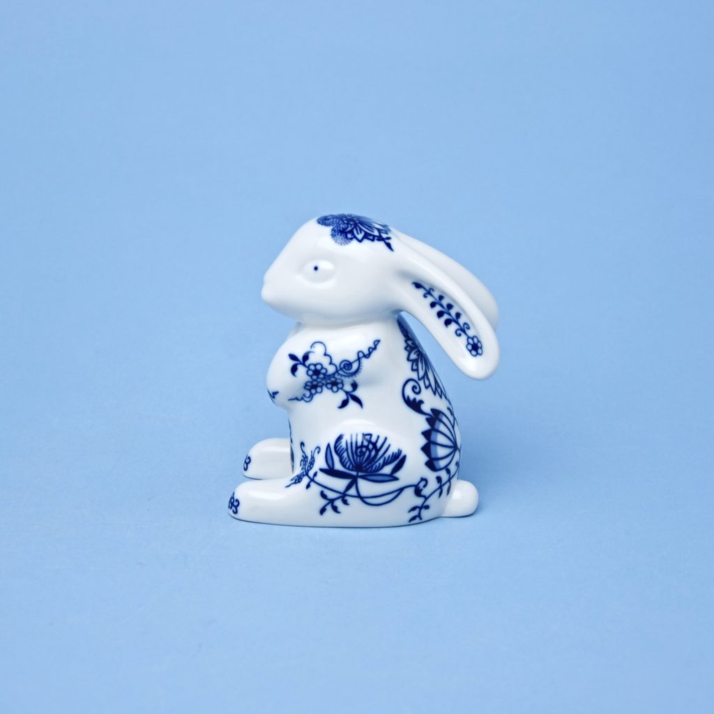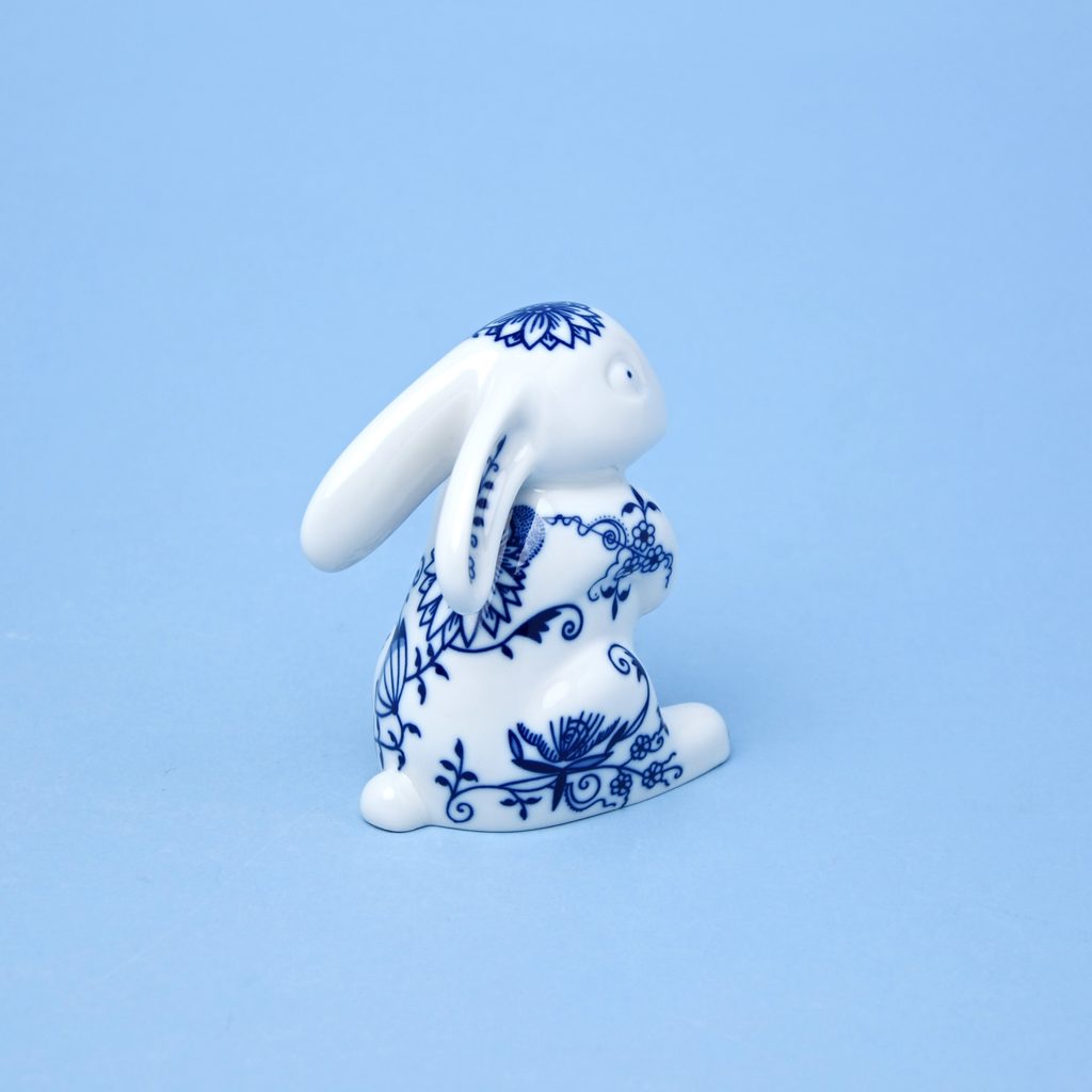 cute porcelain figurine of a sitting bunny, decorated by Blue Onion pattern, made by Leander Loučky manufactory, nw 188 g