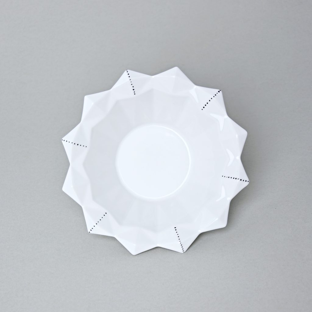 Bowl of an original design based on the tradition of Czech cubism in art deco style. Decor white + small black dots. Made in the Czech porcelain manufactory Goldfinger porcelain, which produces original, author's small series porcelain products. Their strengths are in creative design and high quality of the products.