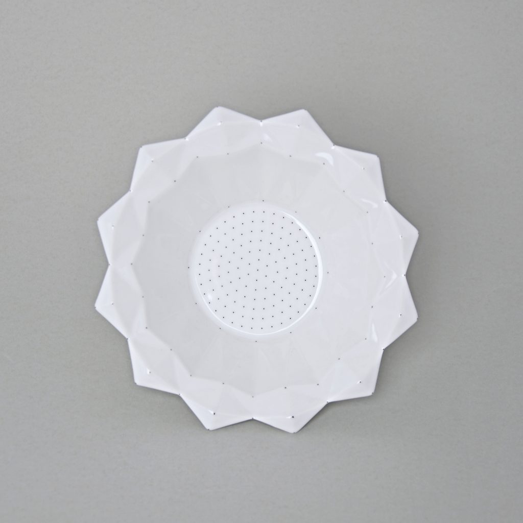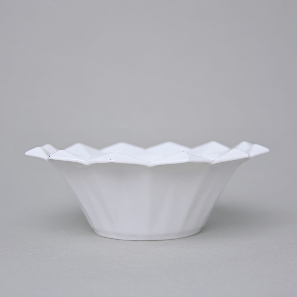 Bowl of an original design based on the tradition of Czech cubism in art deco style. Decor white + small black dots. Made in the Czech porcelain manufactory Goldfinger porcelain, which produces original, author's small series porcelain products. Their strengths are in creative design and high quality of the products.