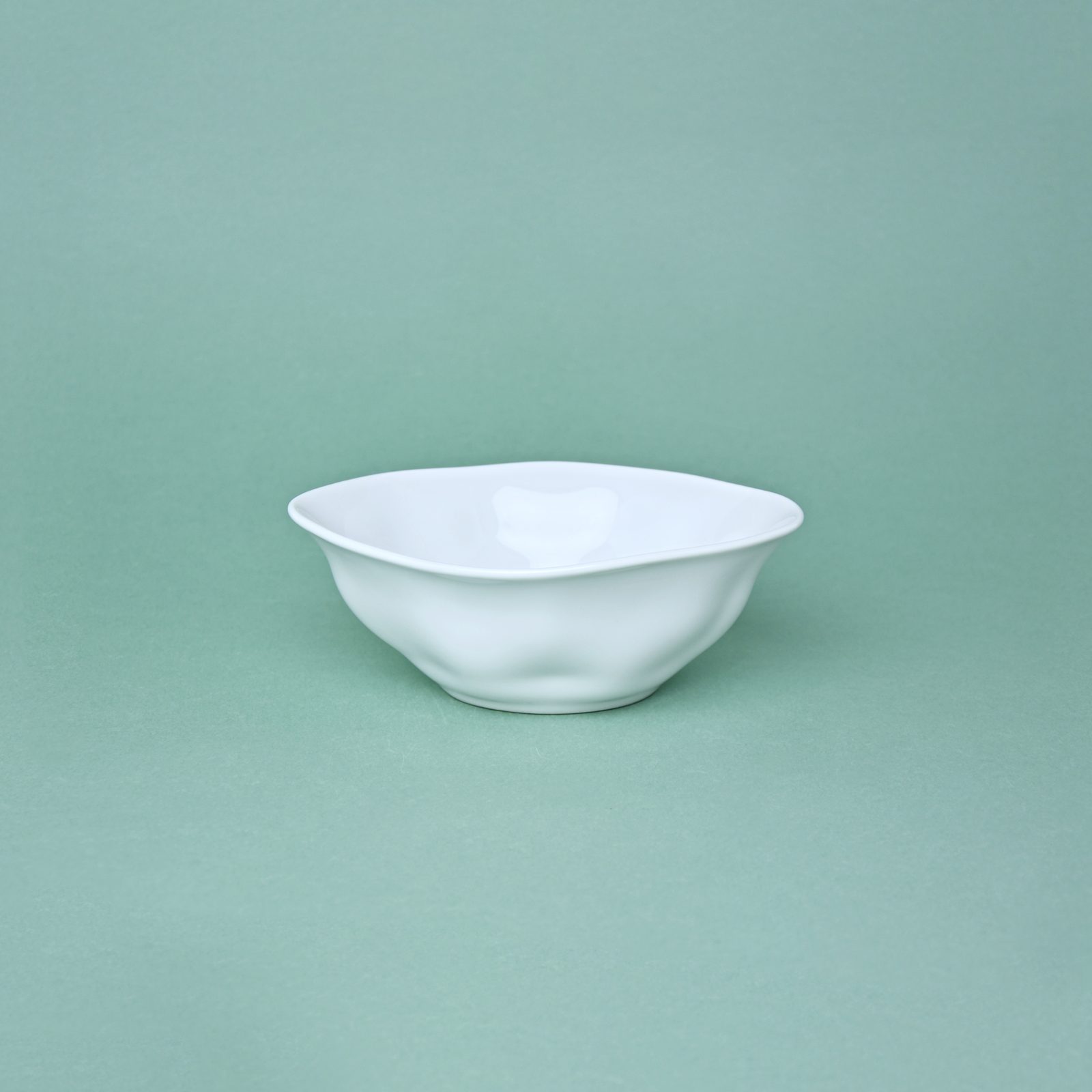 Beautiful design porcelain bowl ideal for compot, müsli, cereals, fruit, etc. Atypical "crumpled" shape from the FLAMENCO collection. No decor - pure white. Made in the Czech Republic by the G. Benedikt 1882 porcelain manufactory, under one of their original brands - Lilien Austria.