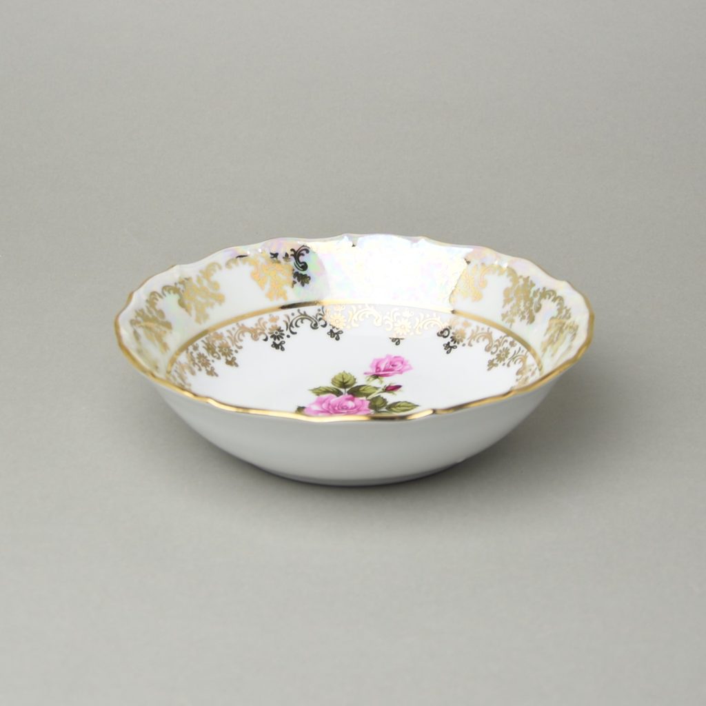 500 ml, 4,6 cm high, Thun 1794 porcelain, QueensCrown manufactory decoration, beautiful voluminous bowl (for large salad, porridge, etc.) with rose, pearl and gold decor