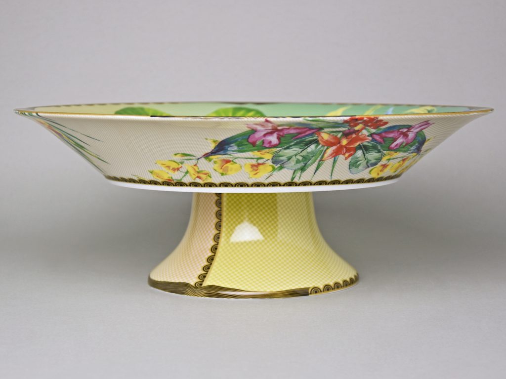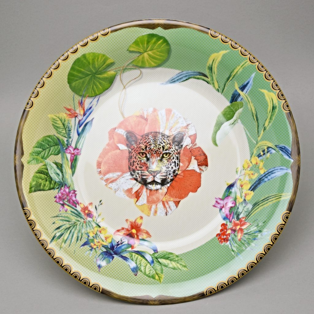 Big porcelain bowl on stand plate from the exotic Été Savage collection by Palais Royal - Italian design on high quality porcelain. The Été Savage ("Wild Summer") collection is for all lovers of exotic, colorful and wild jungles. This land is ruled by King Leopard.