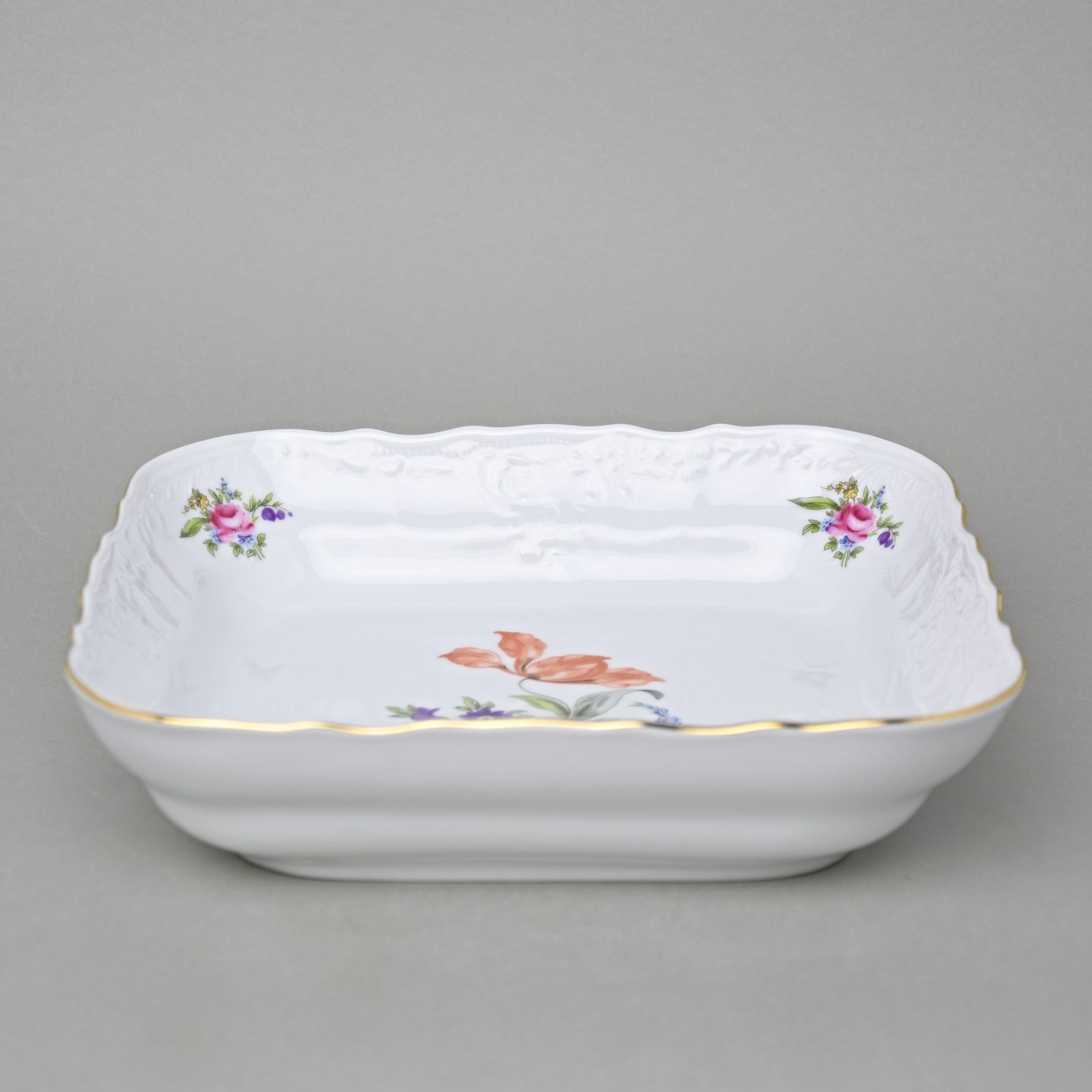 Bowl square 25 cm, Thun 1794 Carlsbad porcelain, BERNADOTTE Meissen Rose