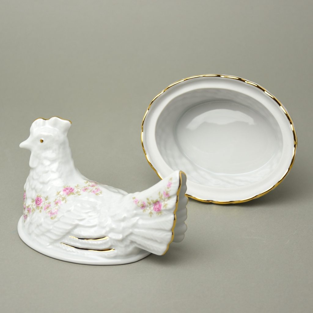 porcelain jar - hen - made of white porcelain and popular Loučky decor number 158 (small roses + gold lines)