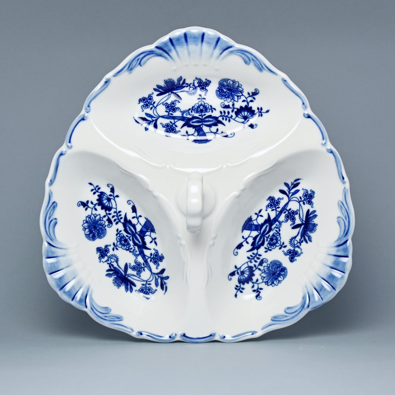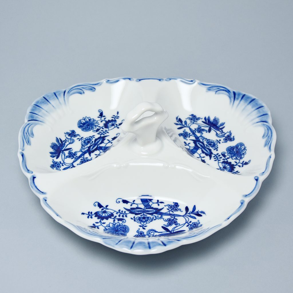 Porcelain 3-piece cabaret Aida 27 cm, made in traditional porcelain factory Czech porcelain, a.s. with Original Blue Onion Pattern in decor.