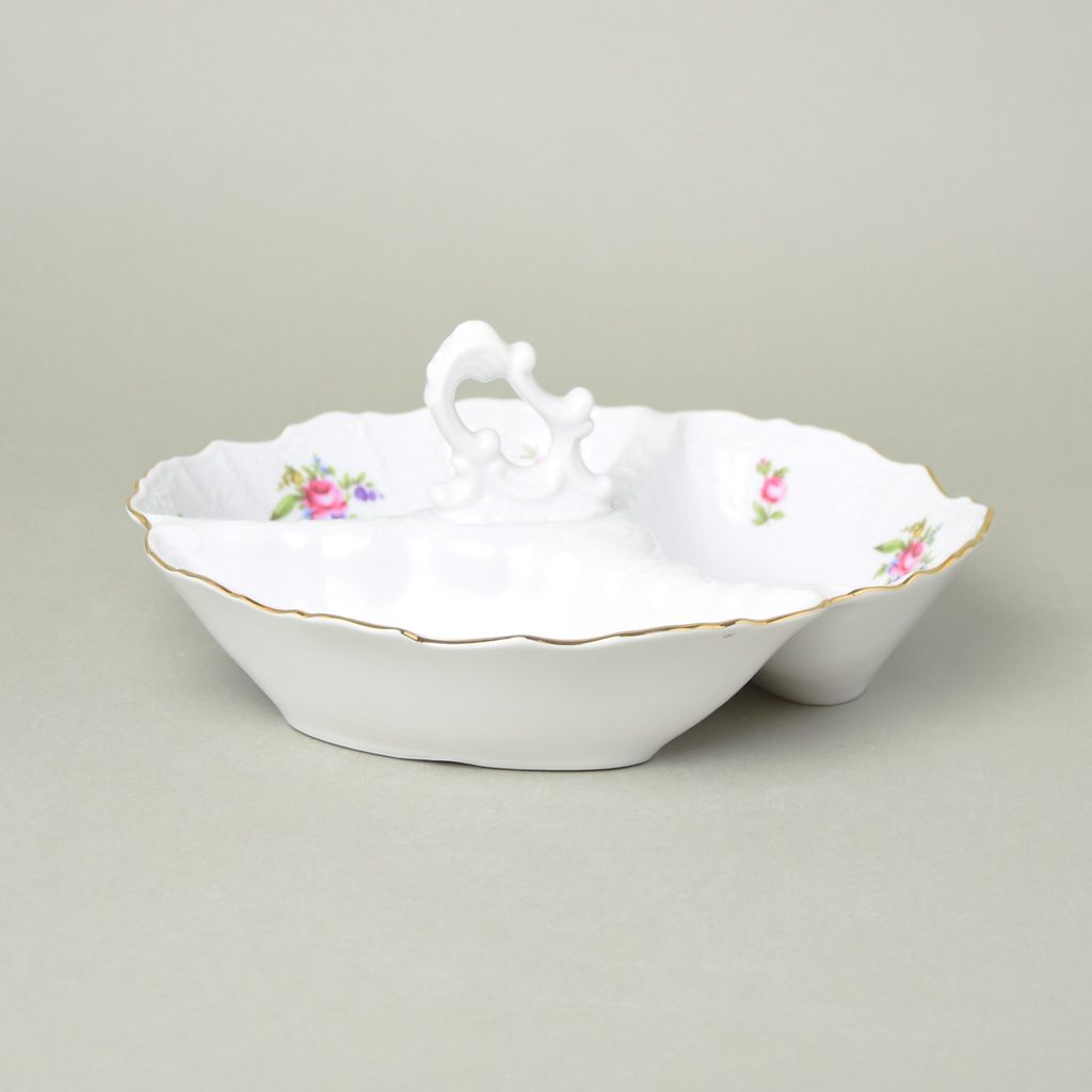 Cabaret bowl 23 cm with handle, Thun 1794 Carlsbad Porcelain, BERNADOTTE Meissen Rose