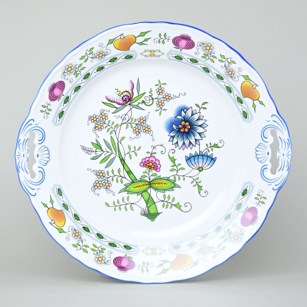 Cake plate with handles 28 cm, COLOURED ONION PATTERN