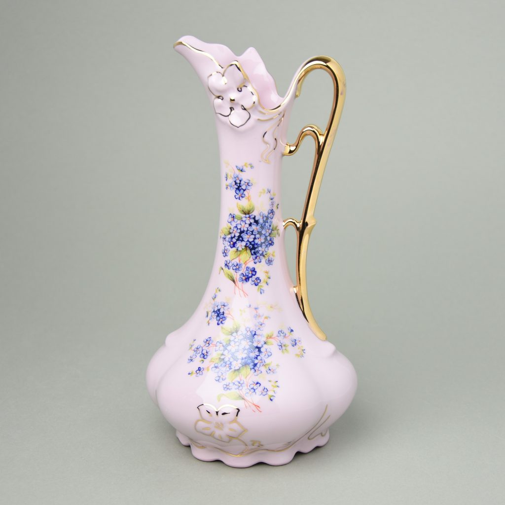 Tall carafe from Chodov rose china porcelain manufactory, Decor Forget-me-not no 419, Secese shape