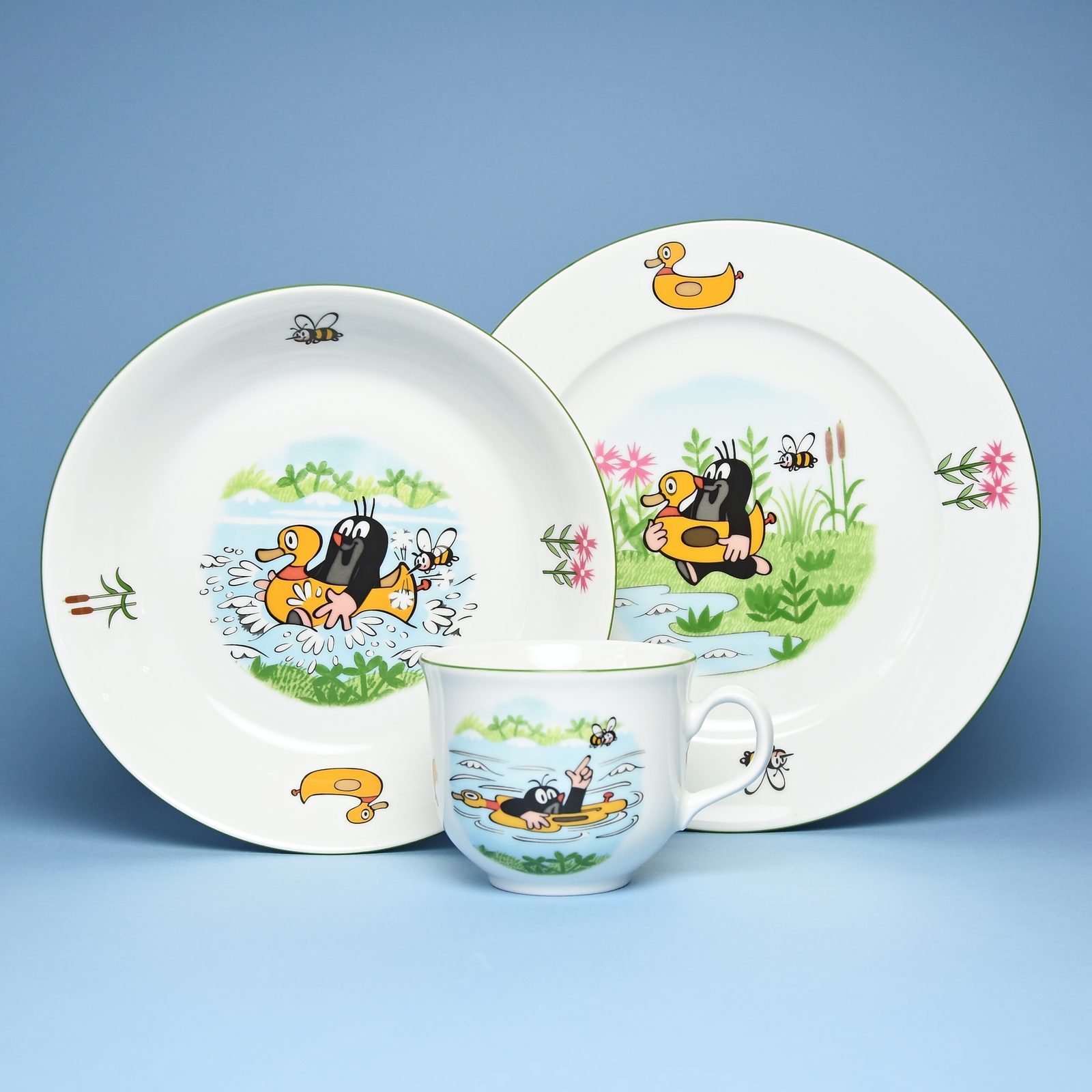 Children set "Mole with duck" 3 pcs., Thun 1794 Carlsbad porcelain Plate 21 cm plus bowl 19 cm plus mug 0,2 l packed in nice Gift box.