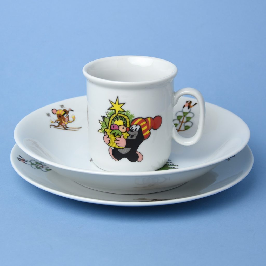 21 cm dinner plate, 20 cm bowl, 0,2 l mug with Czech favourite cartoon hero Krteček (Mole) at Christmas time