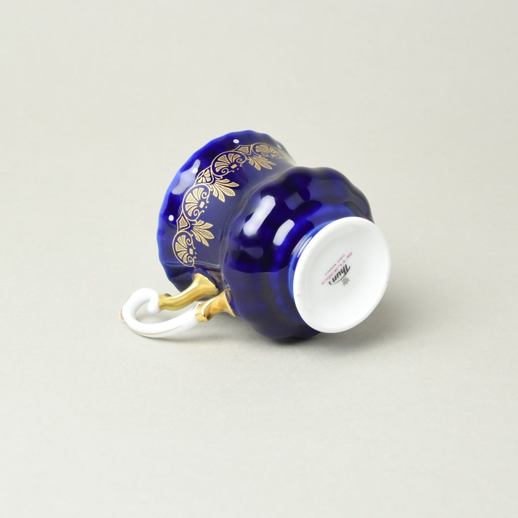 A beautiful cup, lightweight (93 g) in cobalt blue and matte gold, not just for chocolate, height 85 mm, width 73 mm