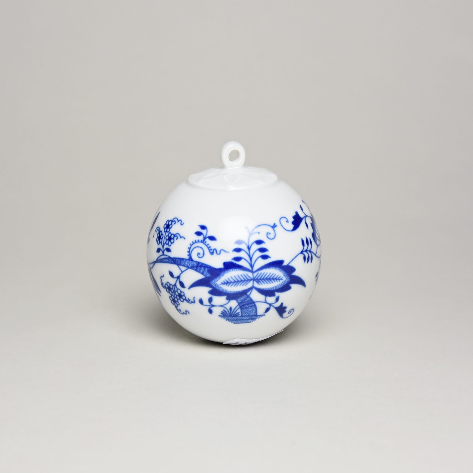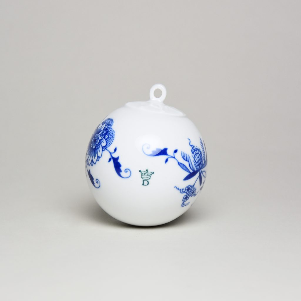 Porcelain Christmas ball decoration. Original Onion Pattern in decor. Made in traditional Czech porcelain factory in Dubí.