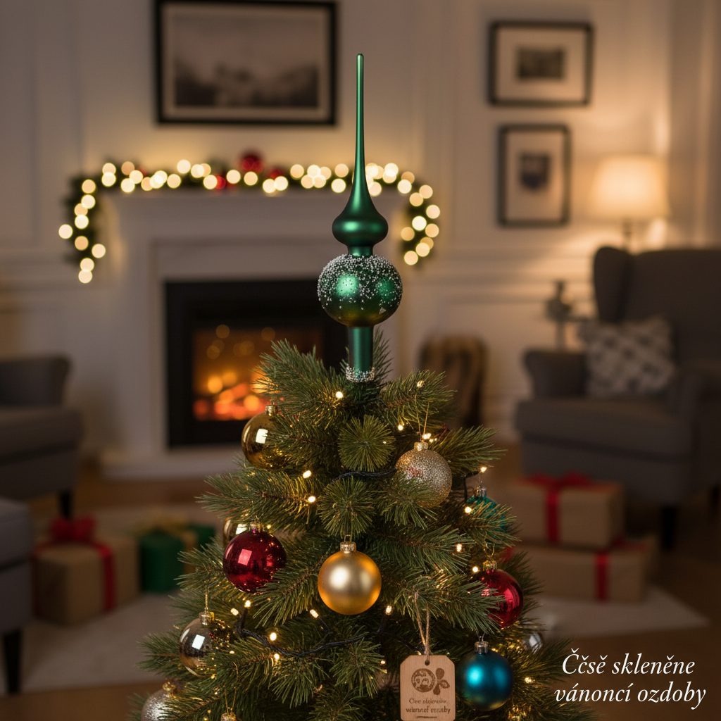 Christmas tree tip 26 cm, glass - GREEN, Bohemian hand made Christmas decorations