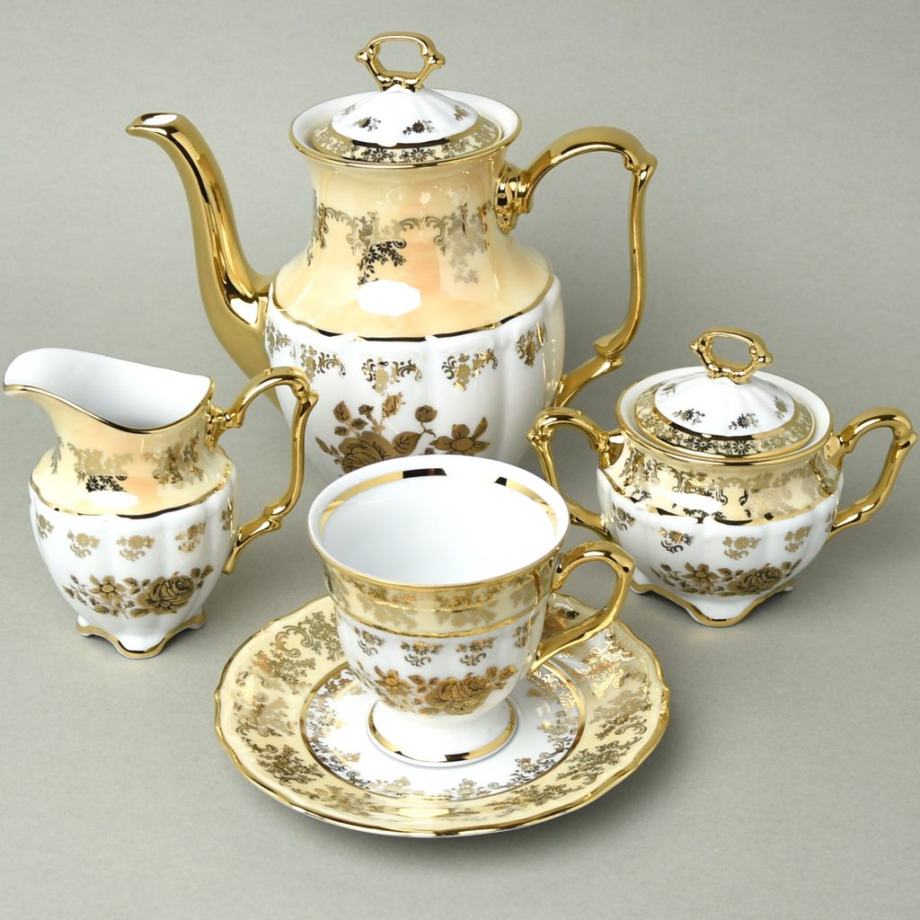 Cofe set for 6 pers., honey golden rose, Royal Czech porcelain