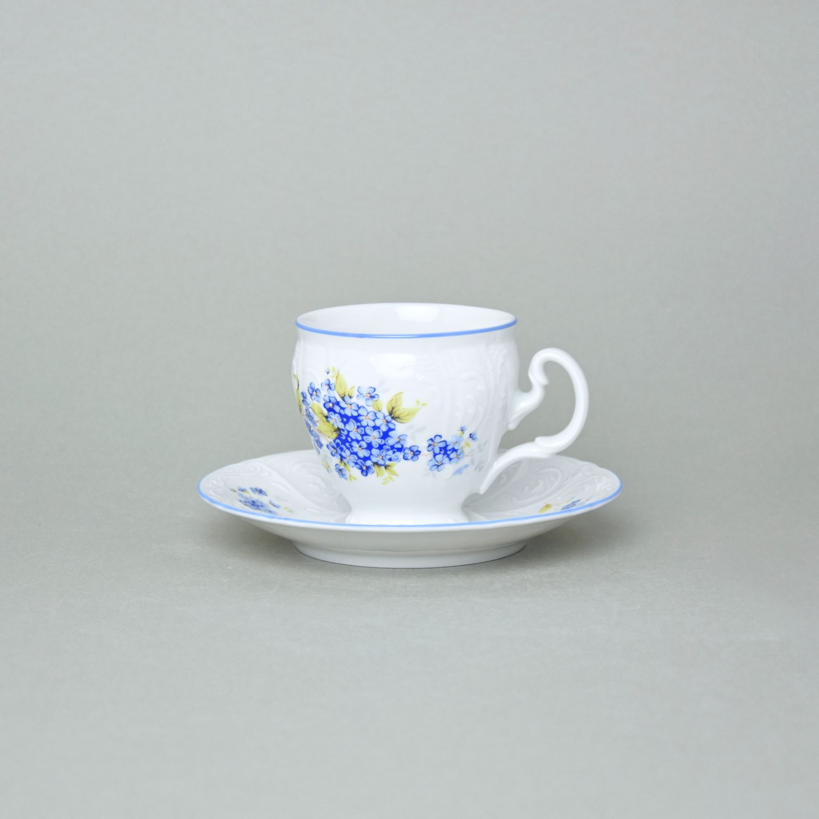 Coffee cup and saucer 150 ml / 14 cm, Thun 1794 Carlsbad porcelain, BERNADOTTE Forget-me-not-flower