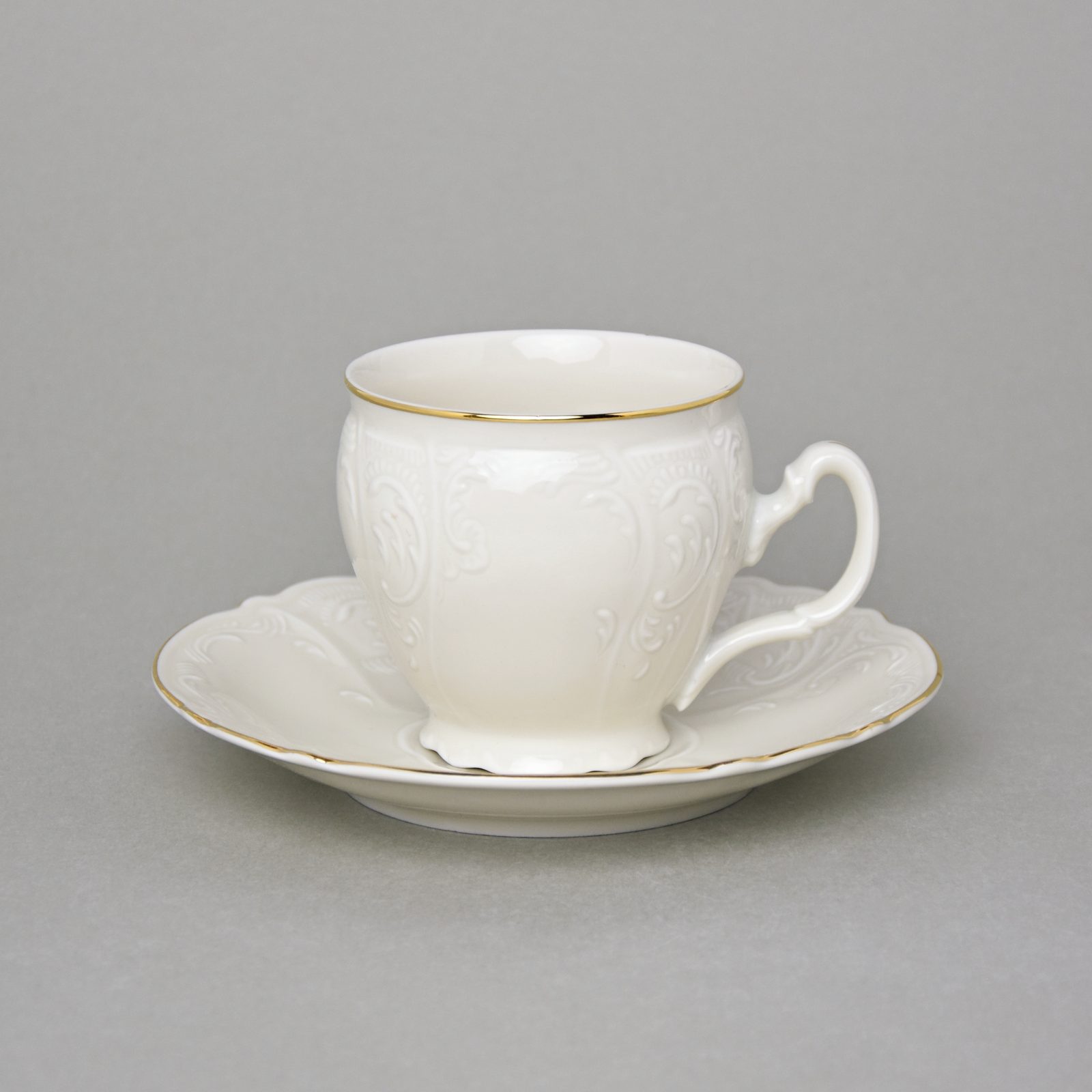 Coffee cup and saucer 220 ml / 16 cm, Thun 1794 Carlsbad porcelain, BERNADOTTE ivory + gold