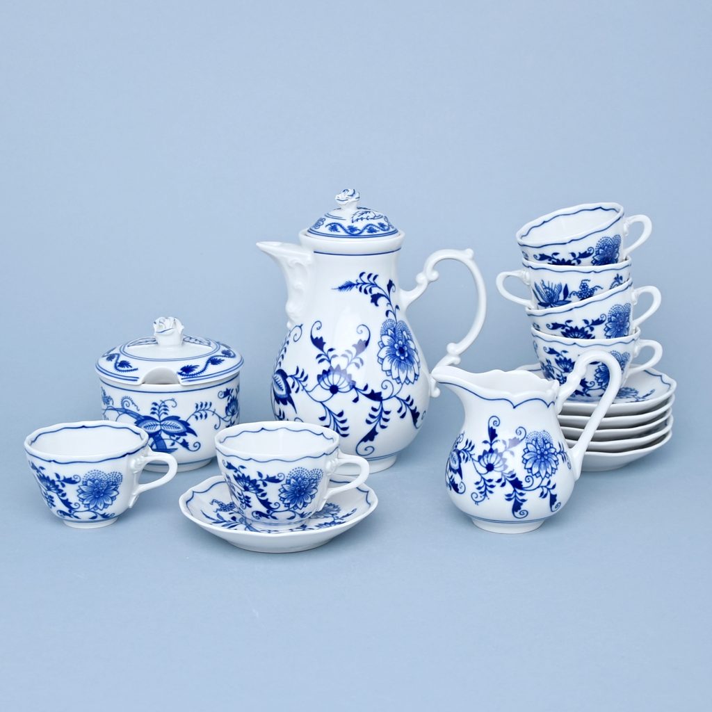 Coffee mocca set for 6 pers., Original Blue Onion Pattern Coffee pot 0,6 l, 6x cup plus saucer 0,08 l, sugar bowl 0,2 l, creamer 0,16 l
