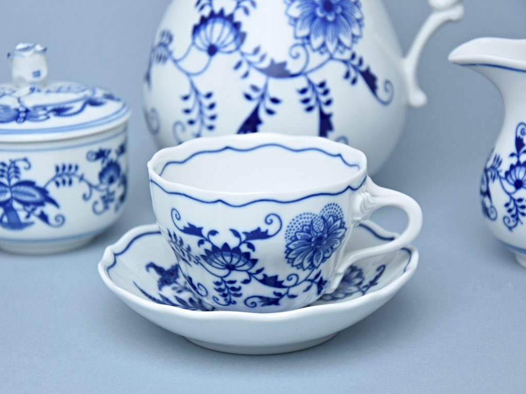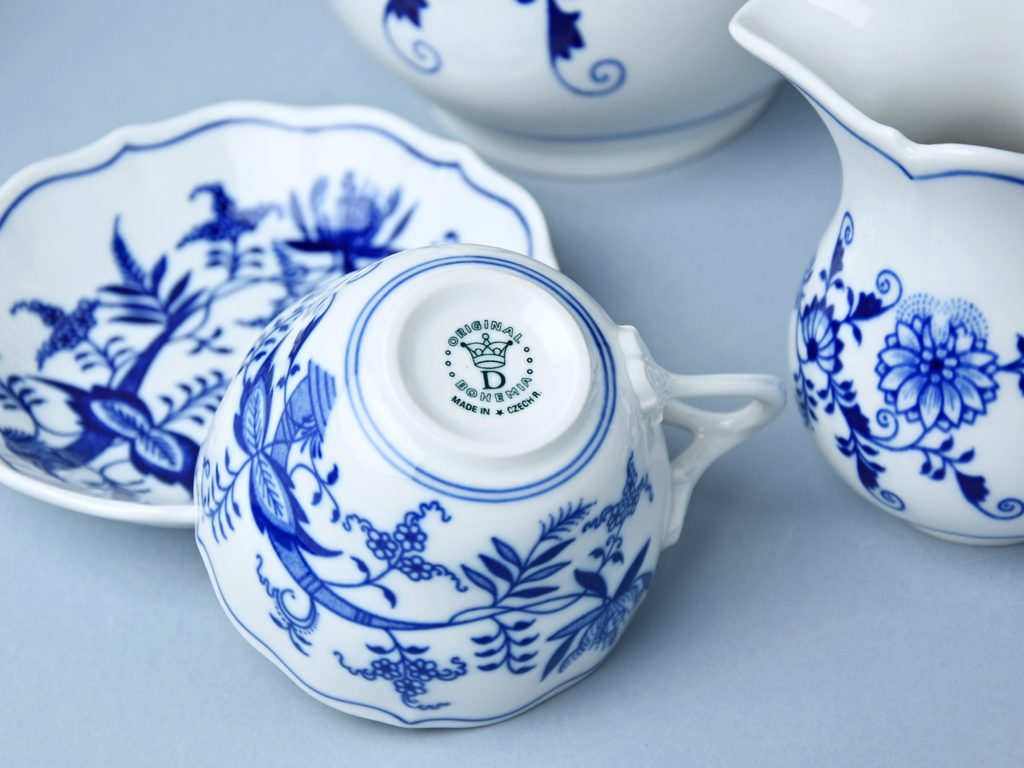 Now, when you read this introduction, the company’s name is Český porcelán and the number of pieces with the onion design achieves 660 shapes. These products are guaranteed by the Association of Glass and Ceramic Industry of the Czech Republic as a “Czech Product”.