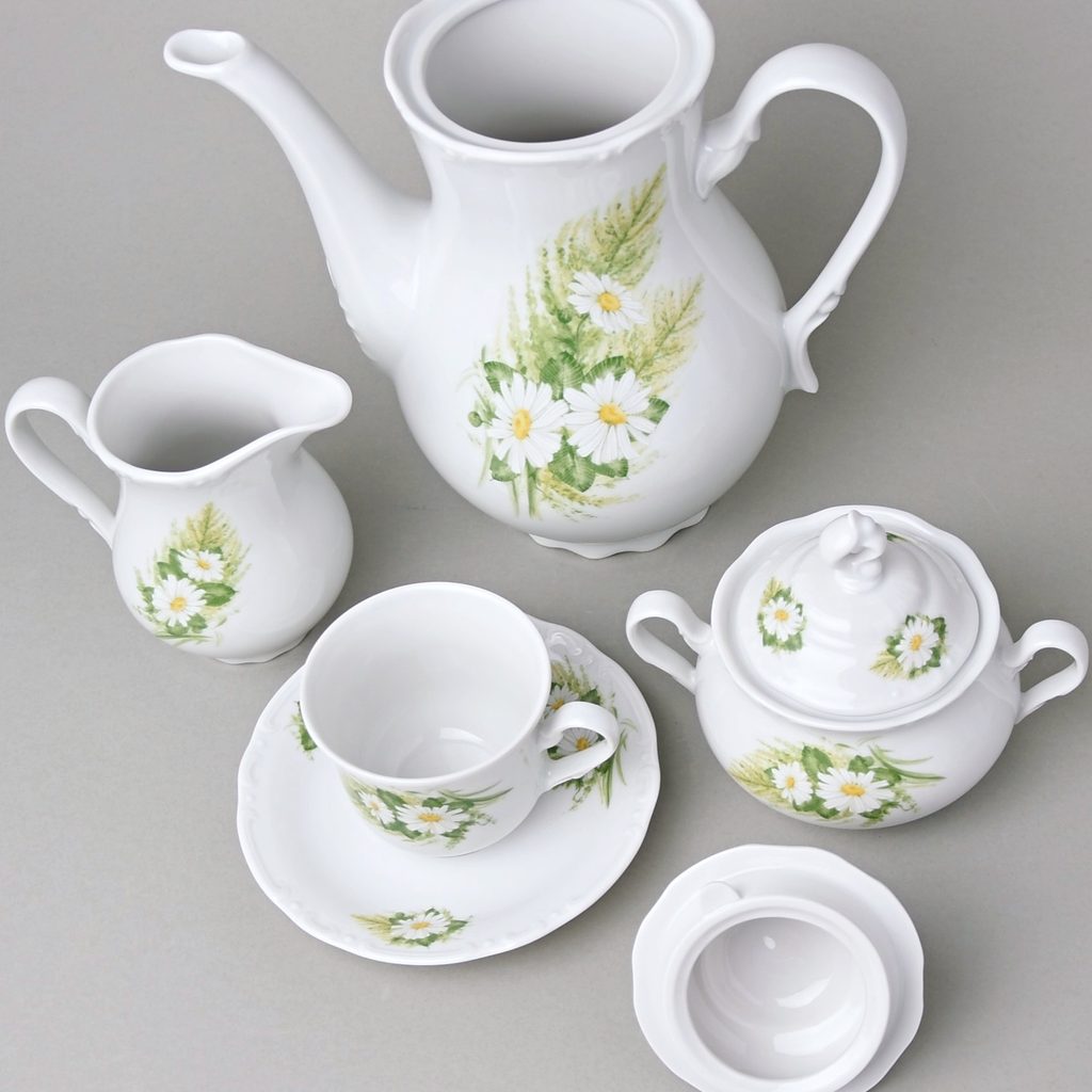 Coffee set for 6 persons, Thun 1794 Carlsbad porcelain, CONSTANCE 80262 6x cup 160 ml, 6x saucer 13,5 cm, coffee pot 1,2 l, sugar bowl, creamer 0,2 l