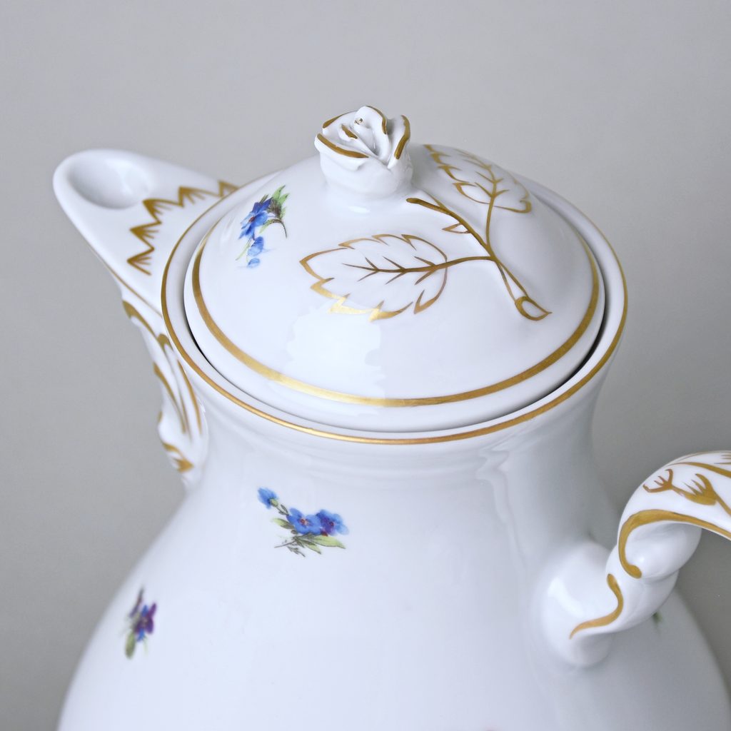 It was already in 1864 when the industrialist from Dubí Anton Tschinkel bought a large building called Lower Forest Mill in present Tovární street in Dubí near Teplice and rebuilt it into a Majolica manufacture. In 1885, the firm O. C. Teuchert from the near Meissen purchased the factory from him and started there production of porcelain in Rococo style with so called “onion” pattern. Its production achieved an extraordinary success and interest of customers which can be seen from the number of parts of the set; in 1929, when the factory was owned by Artur Bloch, it included 257 shapes and until 1956, it was marked with designation MEISSEN in an oval frame.