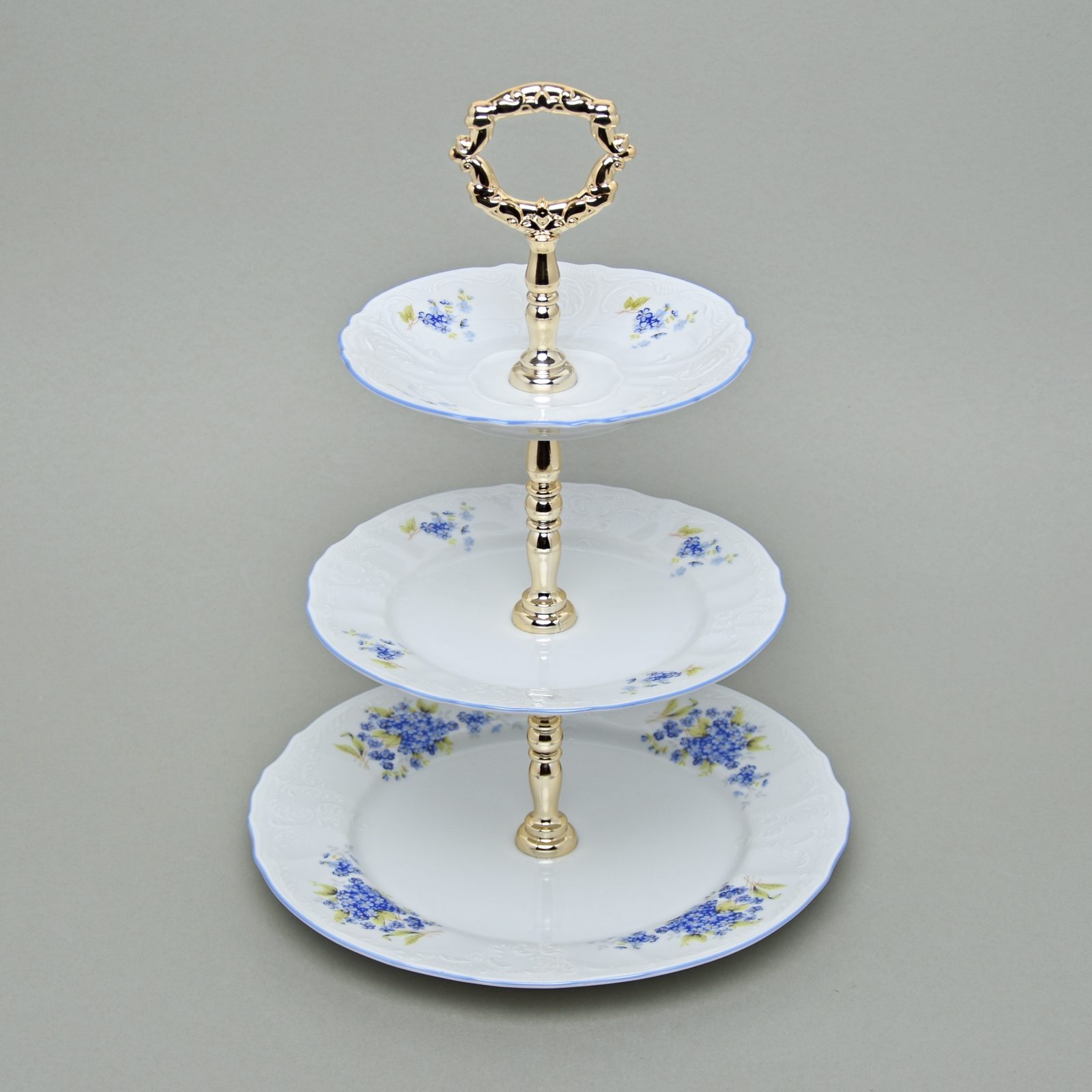 Compartment dish 3 pcs., Thun 1794 Carlsbad porcelain, BERNADOTTE Forget-me-not-flower plate 27 cm plus plate 19 cm plus saucer 16 cm