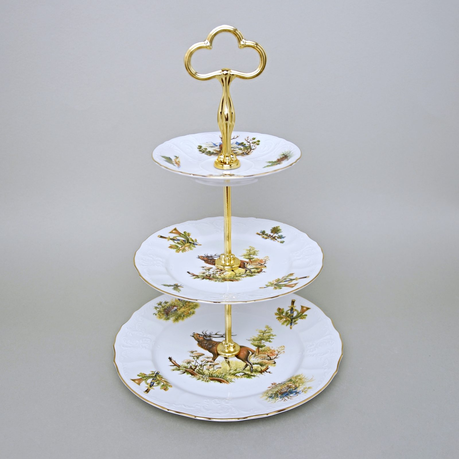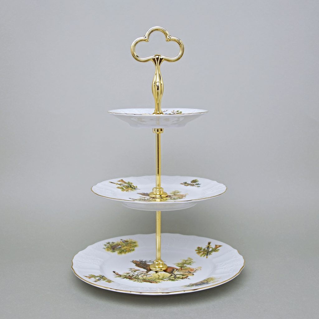 Compartment dish 3 pcs, Thun 1794 Carlsbad porcelain, BERNADOTTE hunting plate 27 + plate 19 + saucer 14 cm, quality steel stick