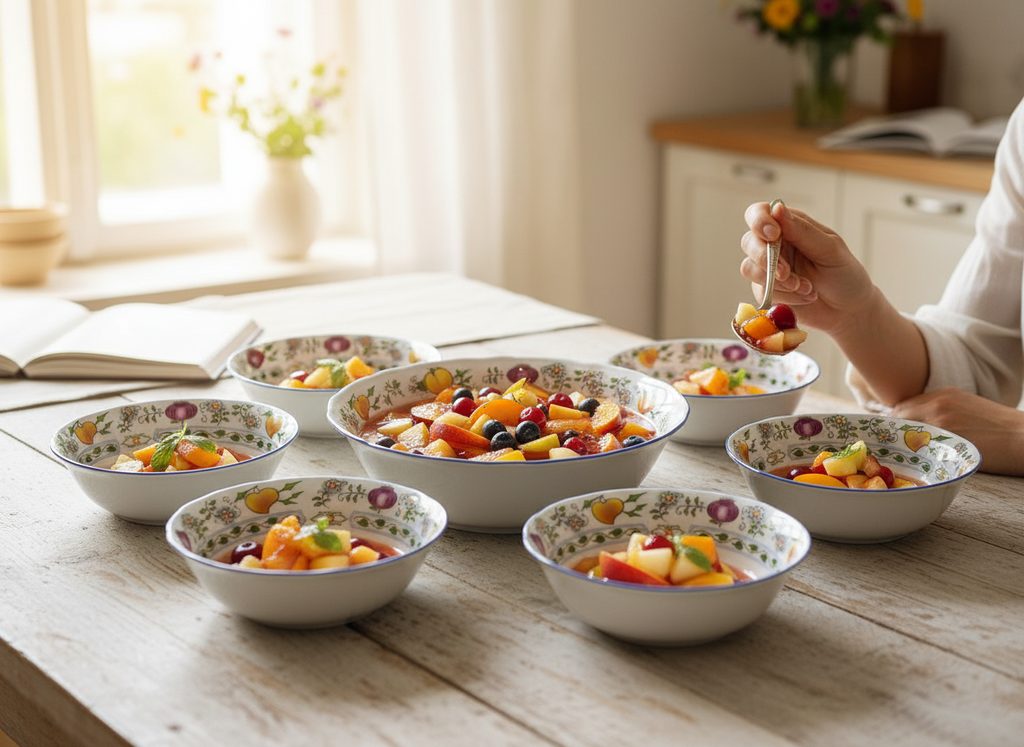 Compot/salad set for 6 pers., COLOURED ONION PATTERN