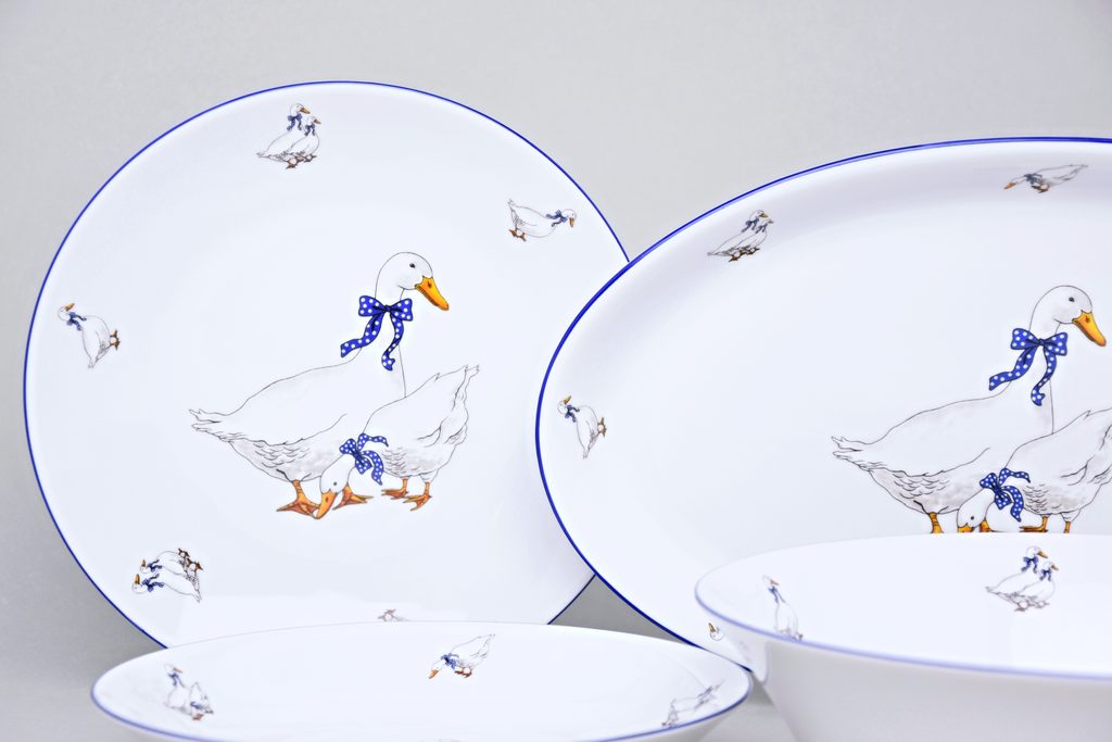 Coups Goose, Dining set 14 pcs., Thun 1794 Carlsbad porcelain 6 plate dining 24 cm, 6 plate deep 22 cm, dish oval 36 cm, bowl 25 cm deep