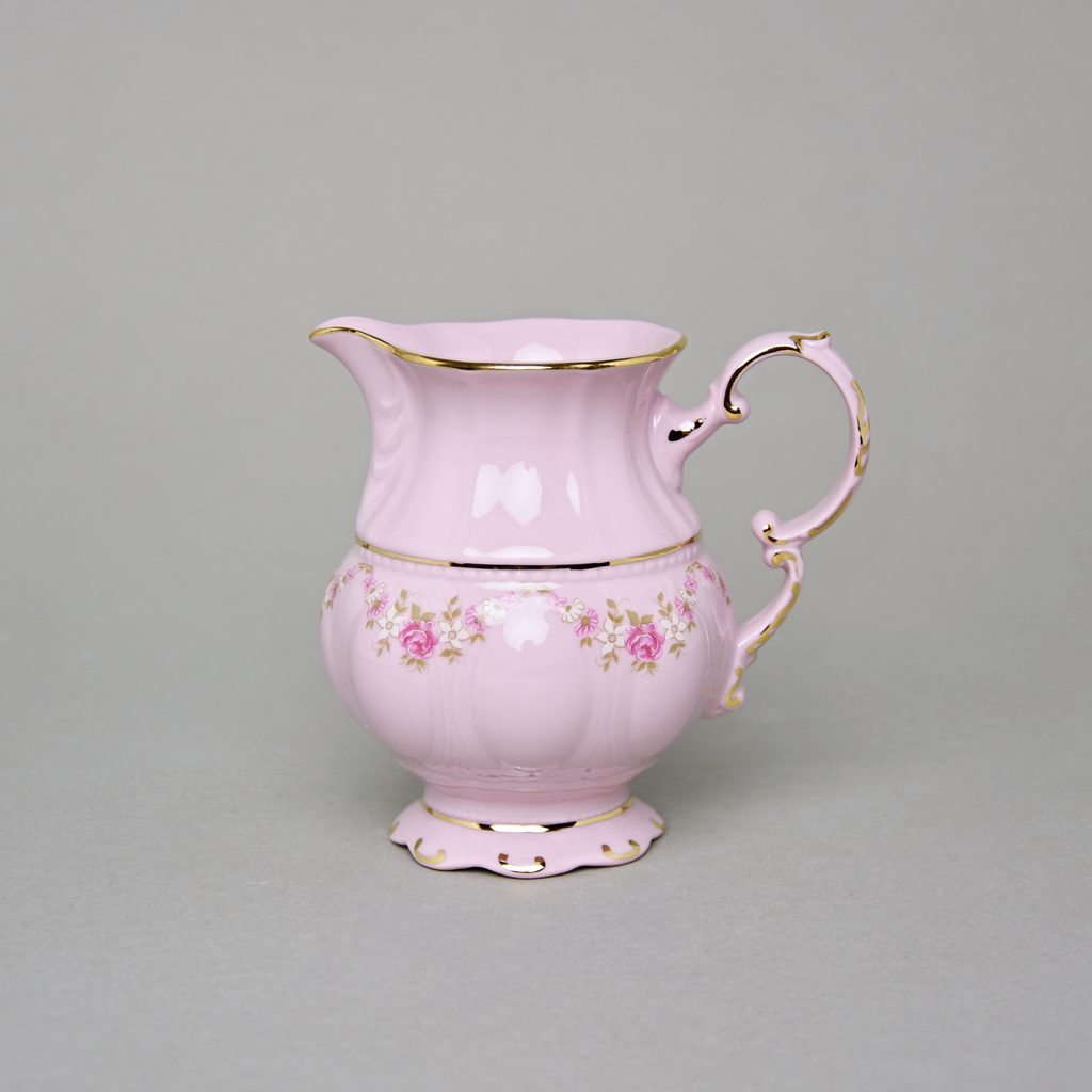 Creamer 200 ml, Leander manufactory (the Loučky city), rose china, popular decor No 158, small roses + gold
