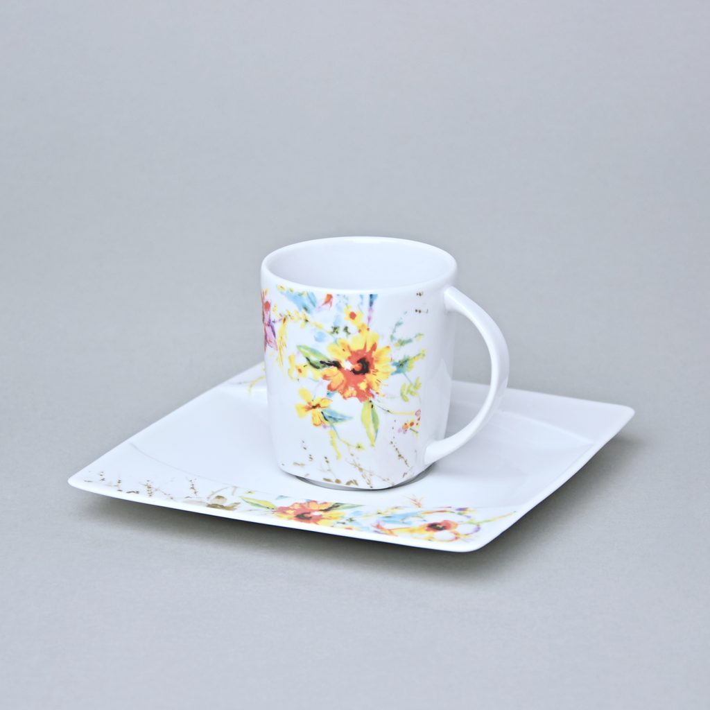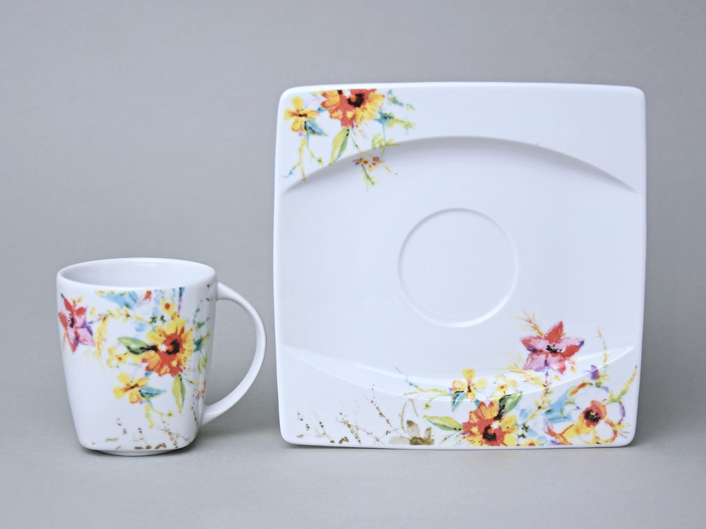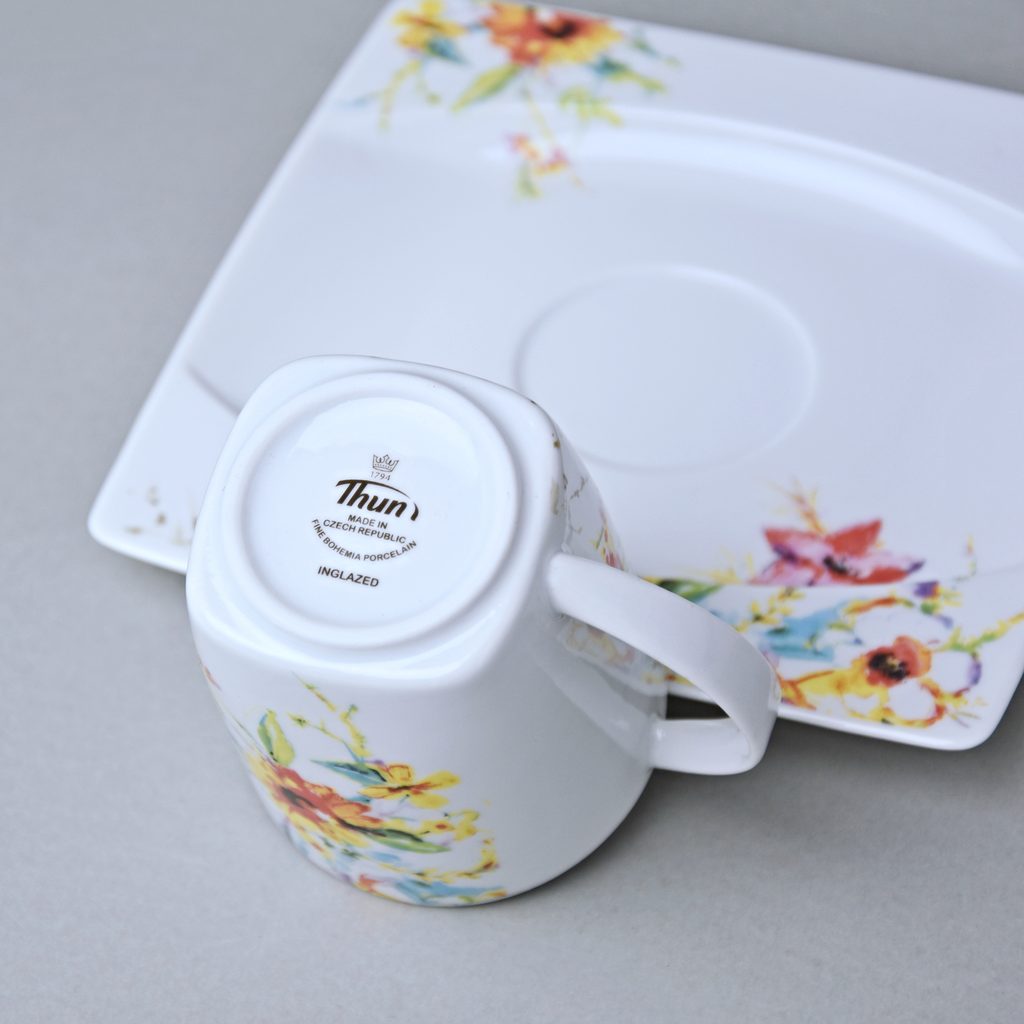 Cup 150 ml and saucer 15,5 cm square, Thun 1794, Carlsbad Porcelain, EYE 30308