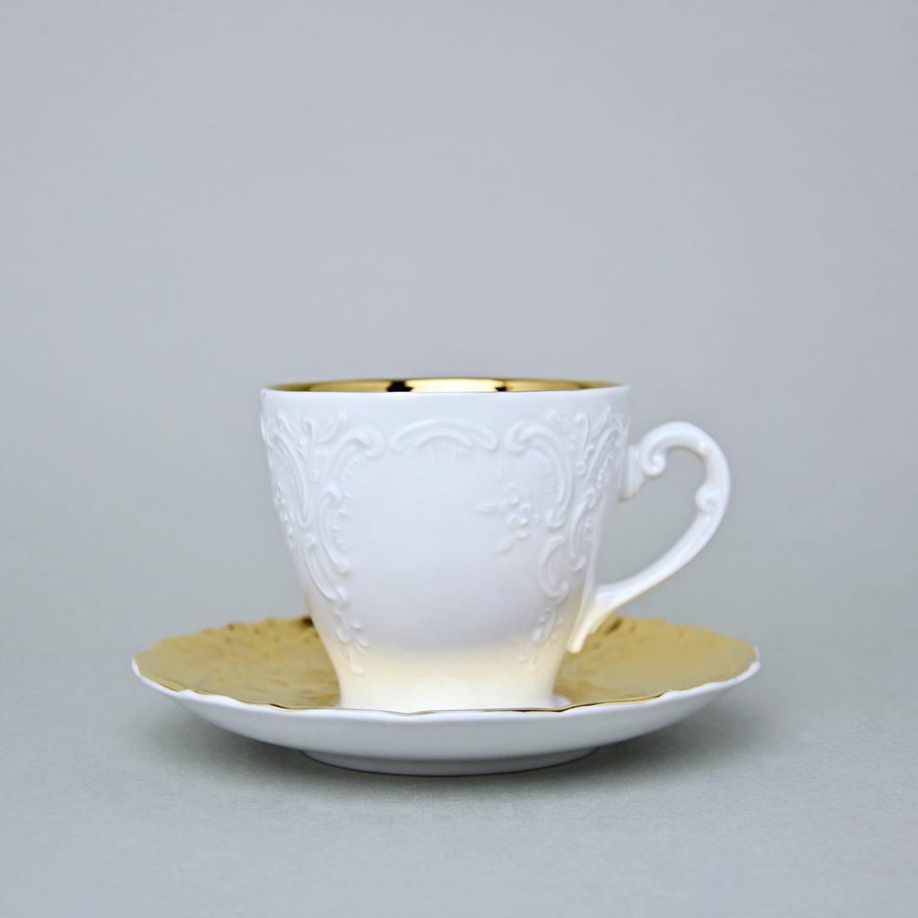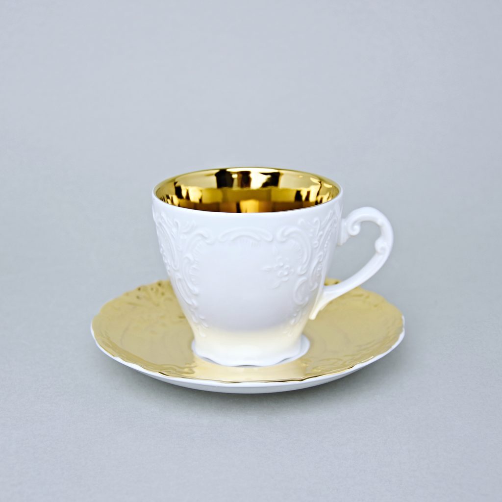 Cup 175 ml and saucer coffee, Opera GOLD inside, Cesky porcelan a.s. Inside gold decoration. Original Bohemian Product.