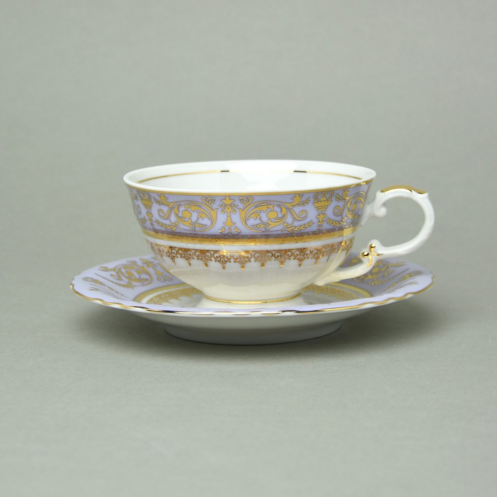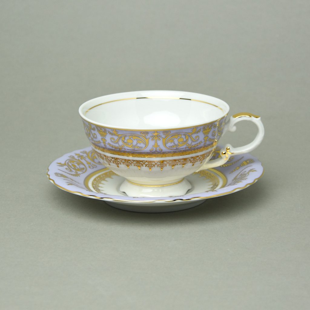 Cup tea 200 ml + sauer 15,5 cm, Sonáta, gold + violet, Leander Loučky