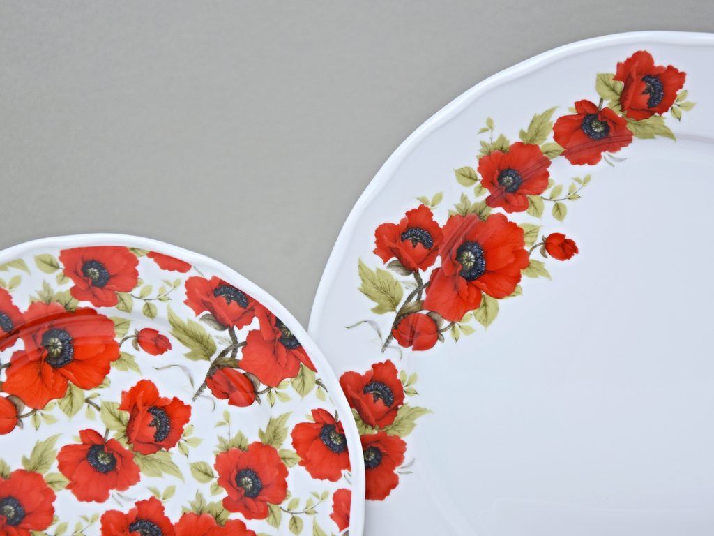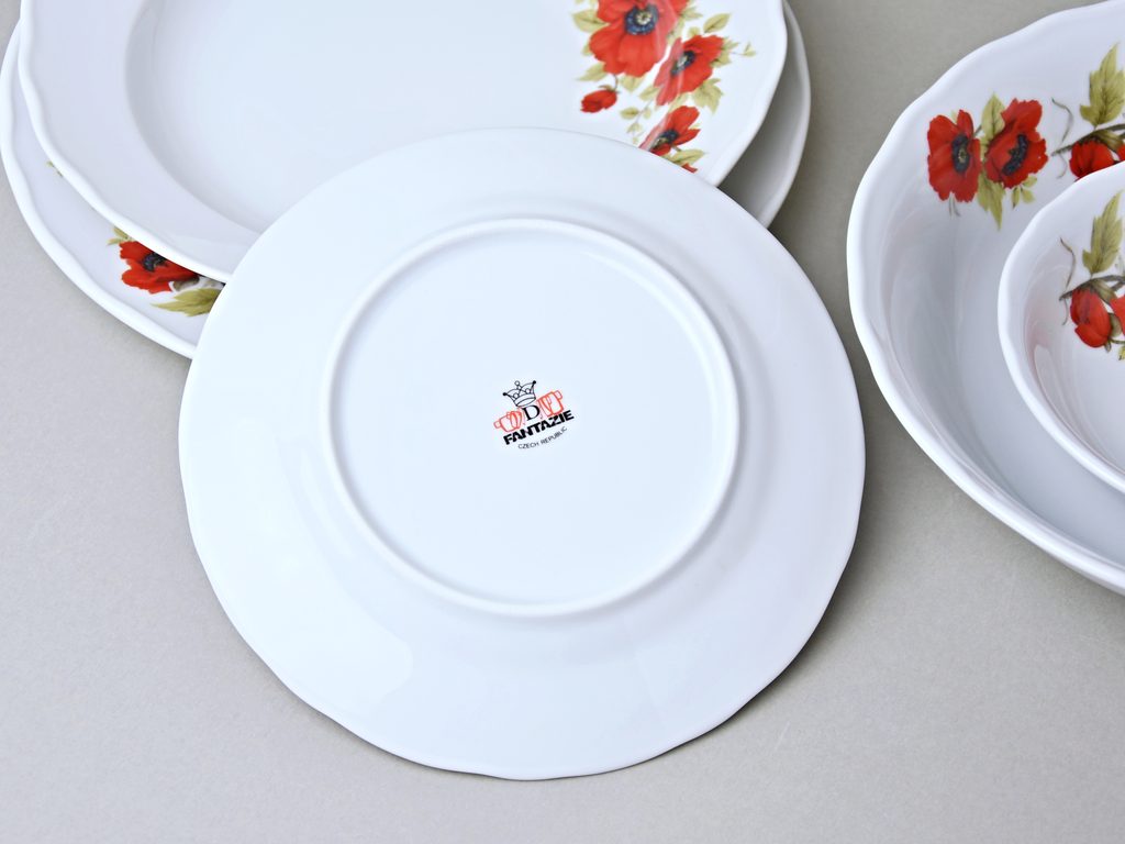 Durable porcelain Rococo shape (on which a Blue onion is decorated too) decorated by Poppy flowers. Made by porcelain munufactory Český porcelán a.s. from Dubí.