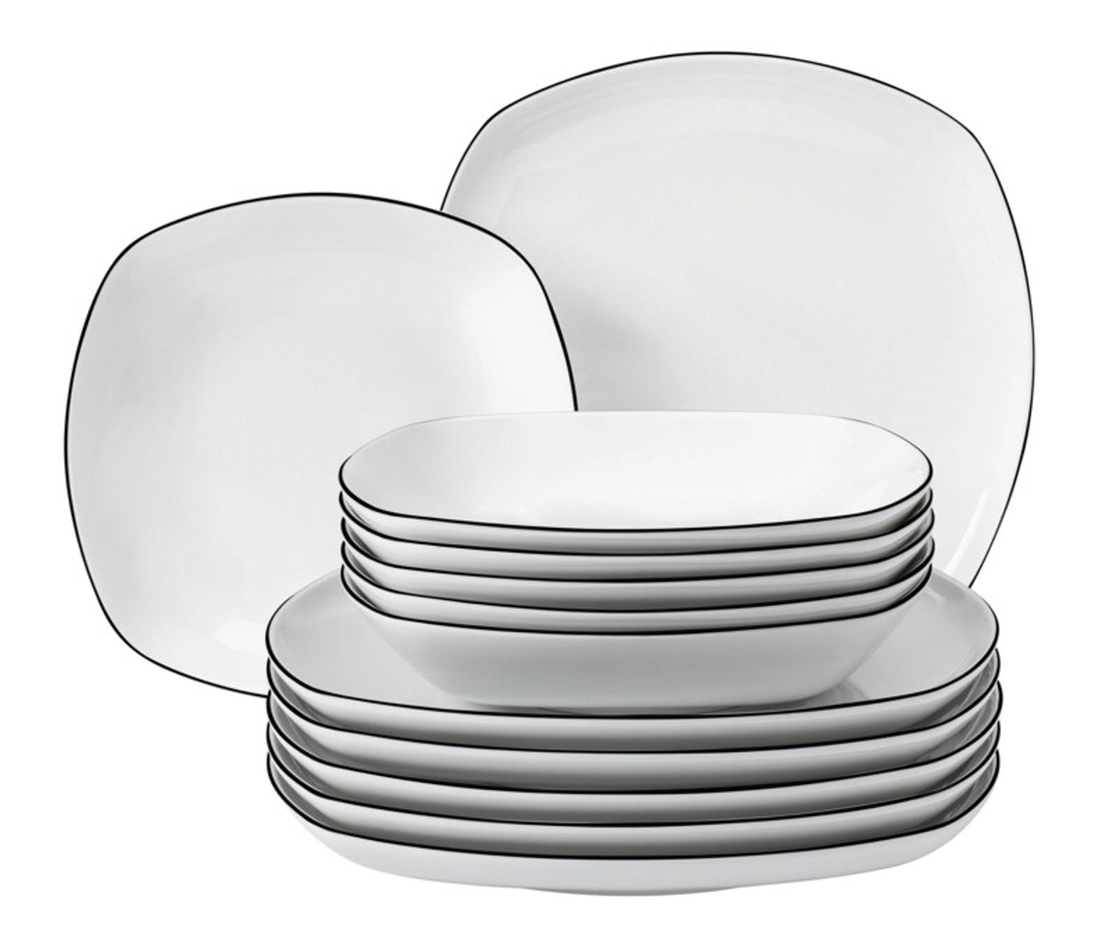 Dinner set 12 pcs. square, Lido Black Line, Seltmann Porcelain