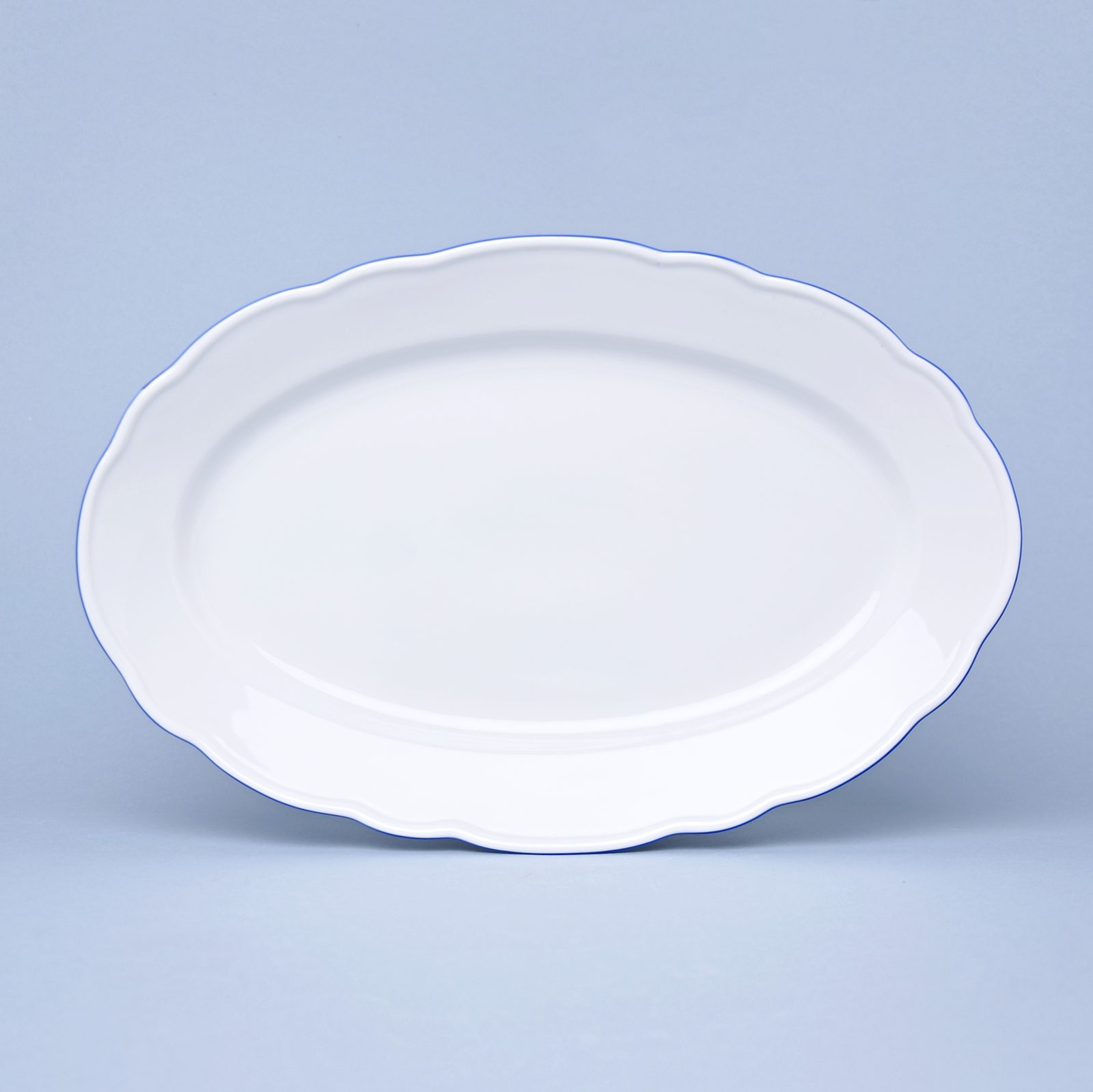 Dish oval flat 35 cm, White with blue line, Cesky porcelan a.s.