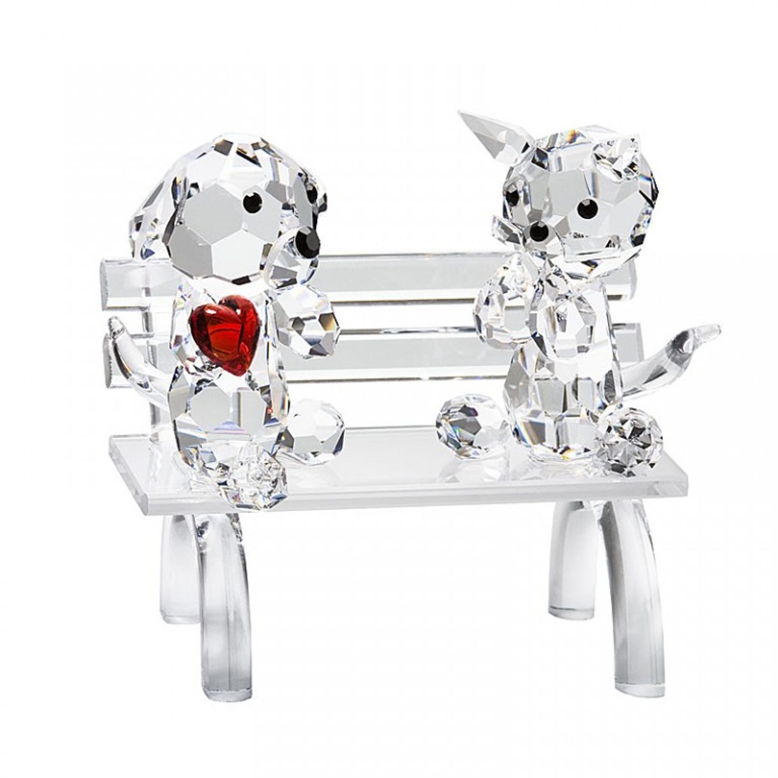 Doggie and Kitty on Bench 50 x 50 mm, Crystal Gifts and Decoration PRECIOSA