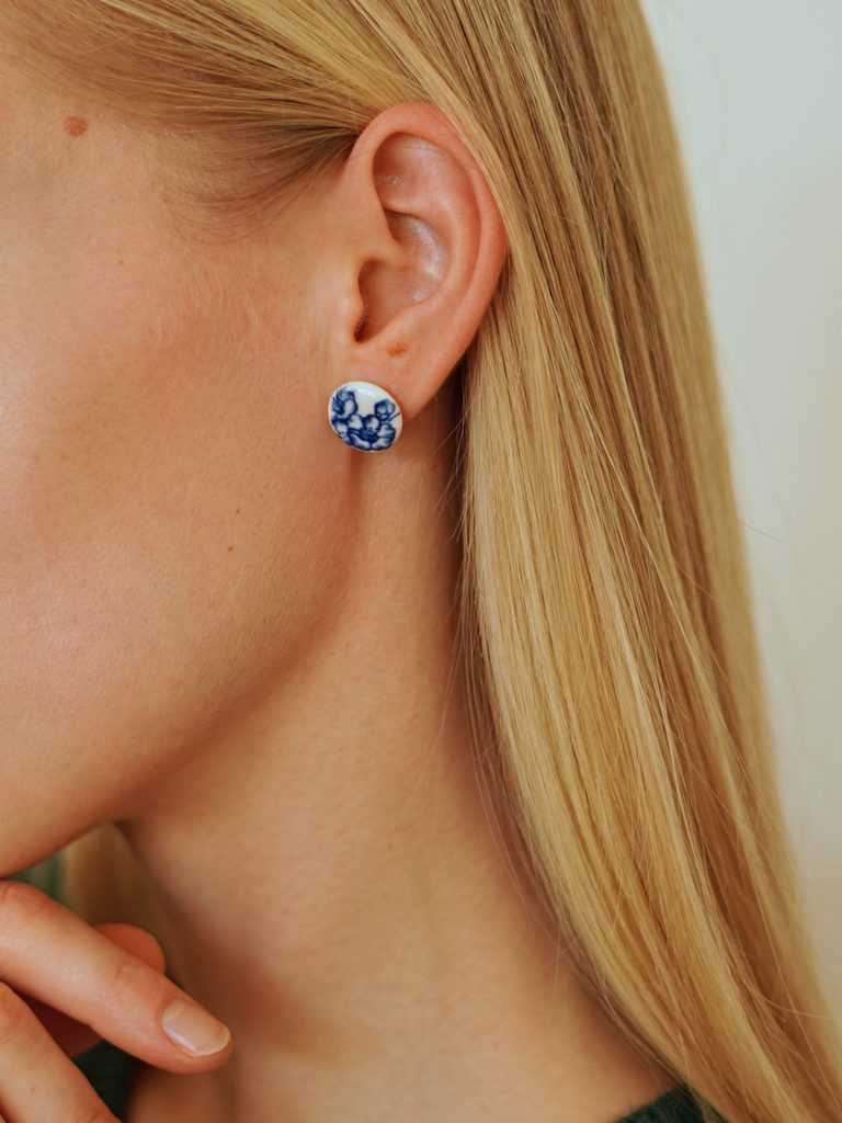 Earrings: Dots - Blue Decors, 3 variants, Porcelain Jewels Studio Mallys