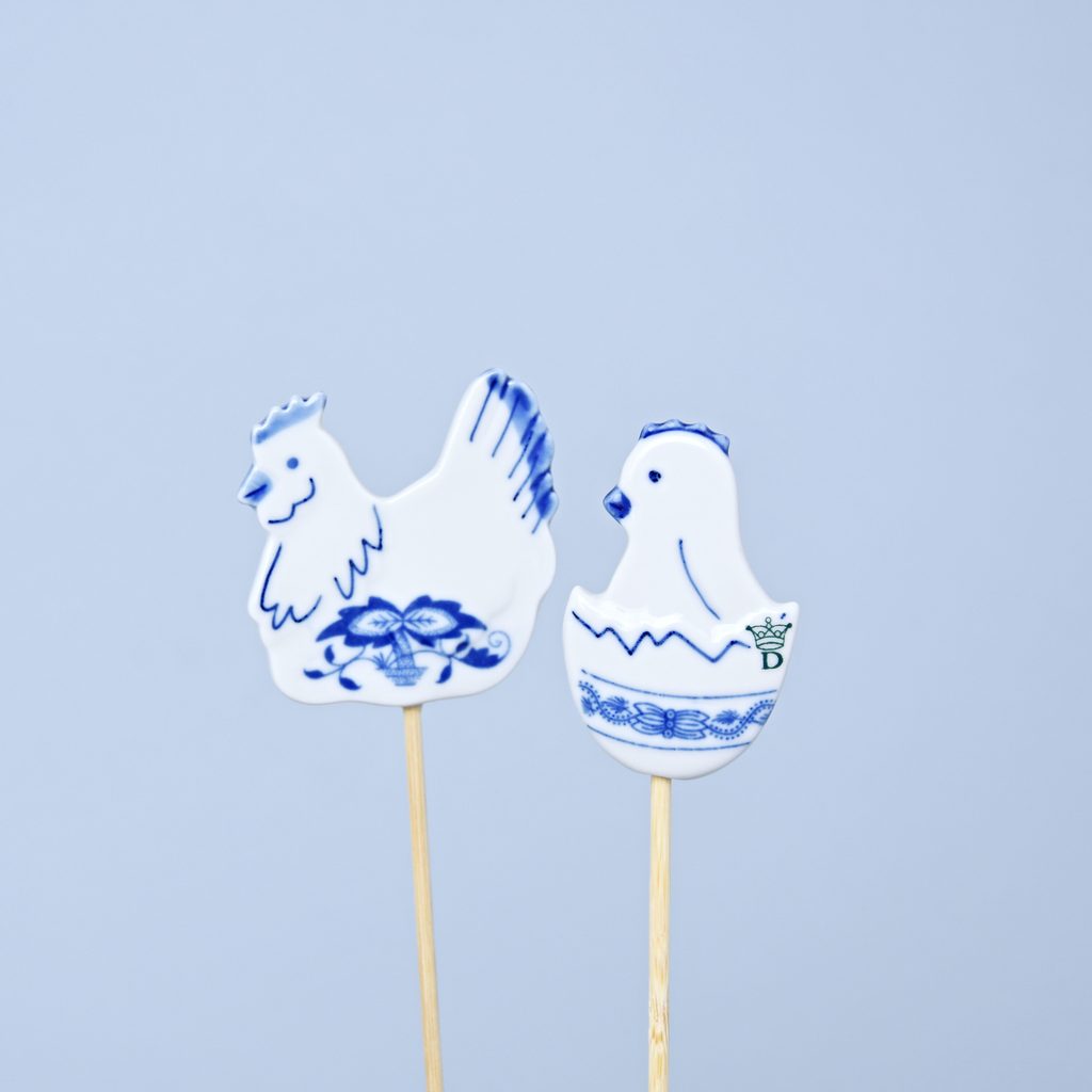 Easter decoration Chicken on skewer , 5,2 x 3,4 cm, Original Blue Onion Pattern