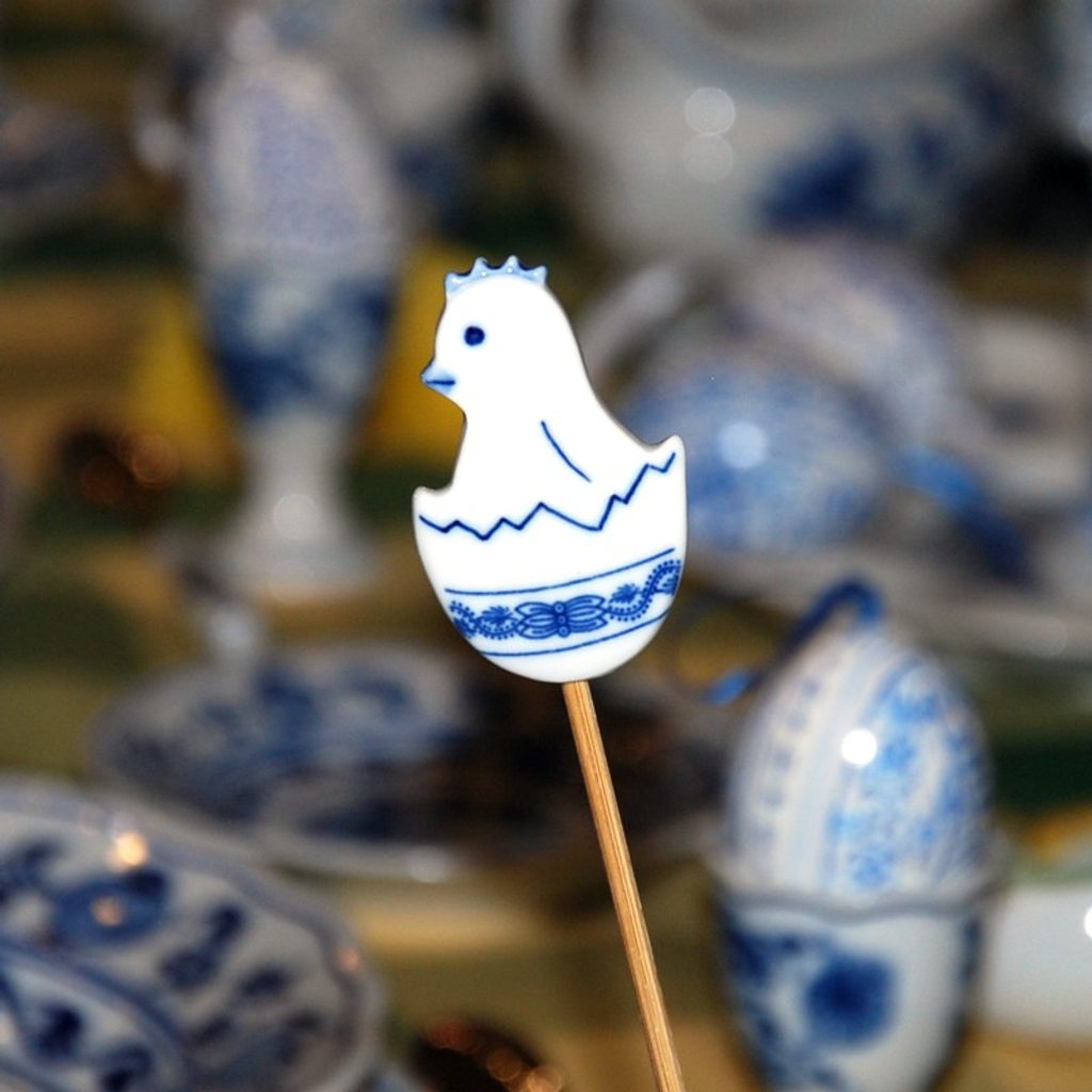 Easter decoration (flower pot insert) Chicken on skewer , 5,2 x 3,4 cm, Original Blue Onion Pattern