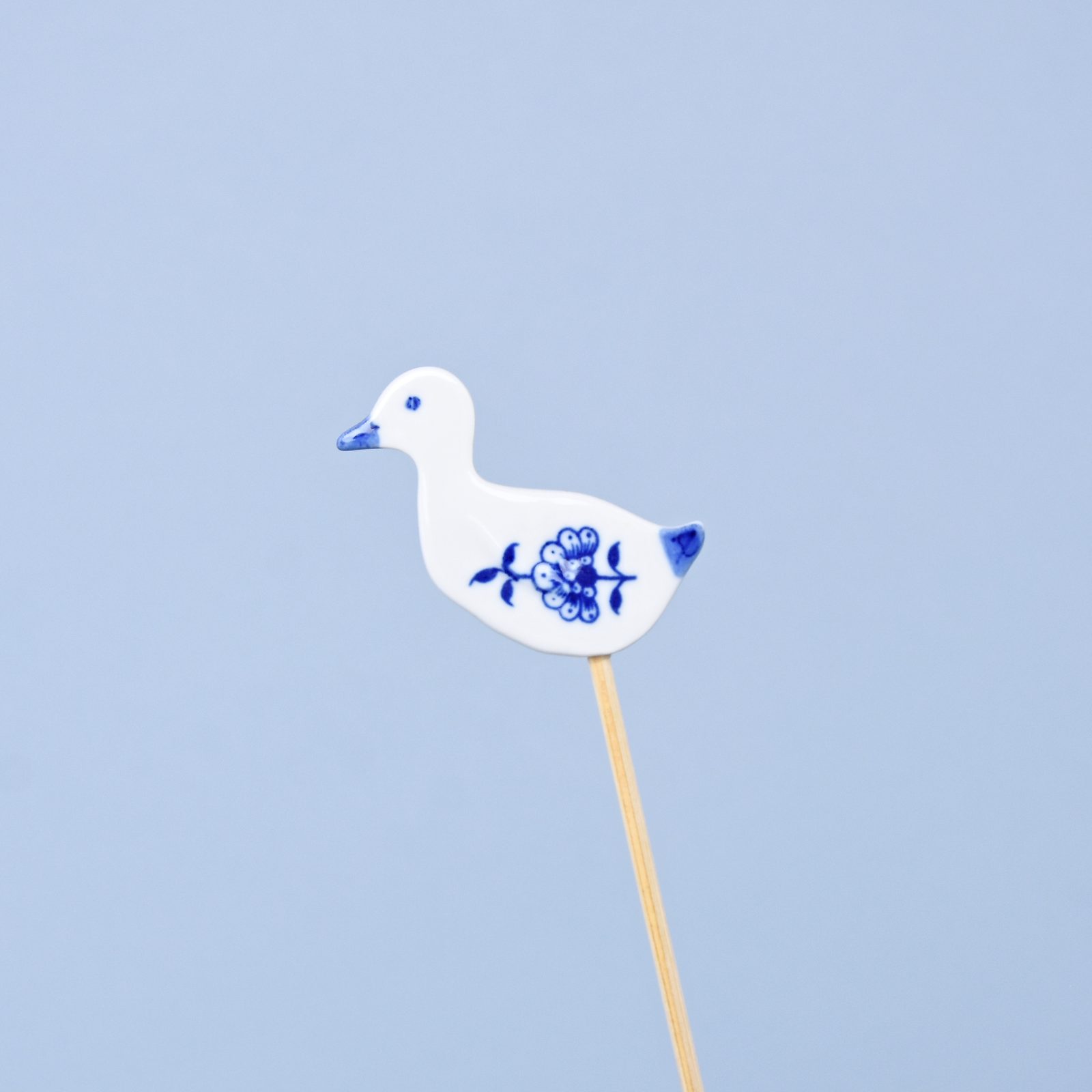 Easter decoration (flower pot insert) Goose on skewer , 5,6 x 5,1 cm, Original Blue Onion Pattern