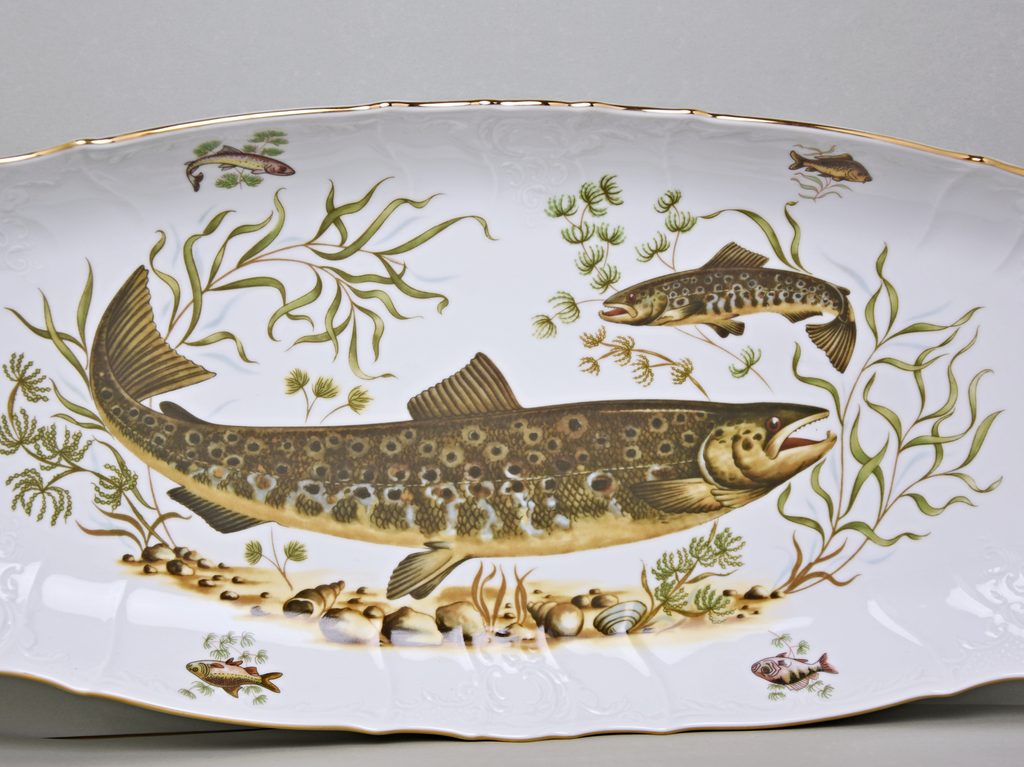 Fish tray 65 cm, Thun 1794 Carlsbad porcelain, BERNADOTTE fishing