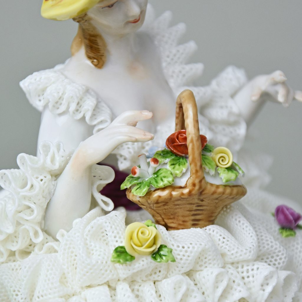 Flowergirl 14 x 8 x 17 cm, Kurt Steiner, Porcelain Figures Unterweissbacher The "Aelteste Volkstedt" was founded in 1762. It is the oldest working porcelain manufactory in Thuringia. Its founding dates back to Georg Heinrich Macheleid who deciphered the composition for the right porcelain paste, the "Arkanum", in 1760. Artistic pieces from the Aeltesten Volkstedter Porzellanmanufaktur are highly regarded among connoisseurs and today fetch the highest prices in the antique trade. The freshness..