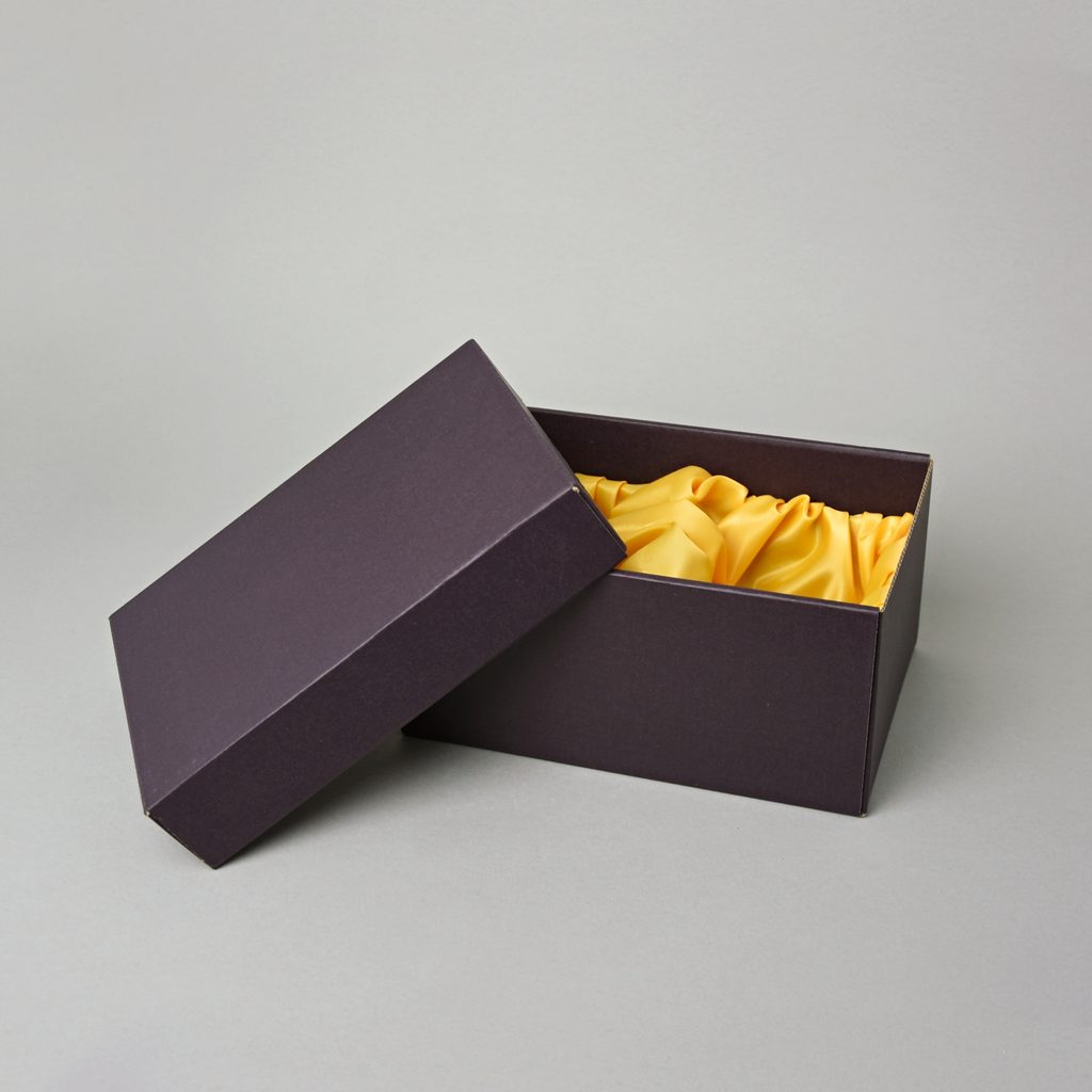Gift Box brown with yellow satin inside, Small, 21 x 14,8 x 10 cm