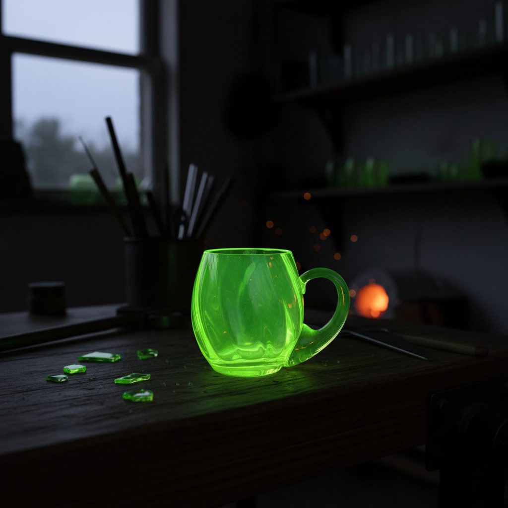 OPTICA Glass with Handle, Made of Genuine Uranium Glass, Handcrafted at the Janov Glassworks