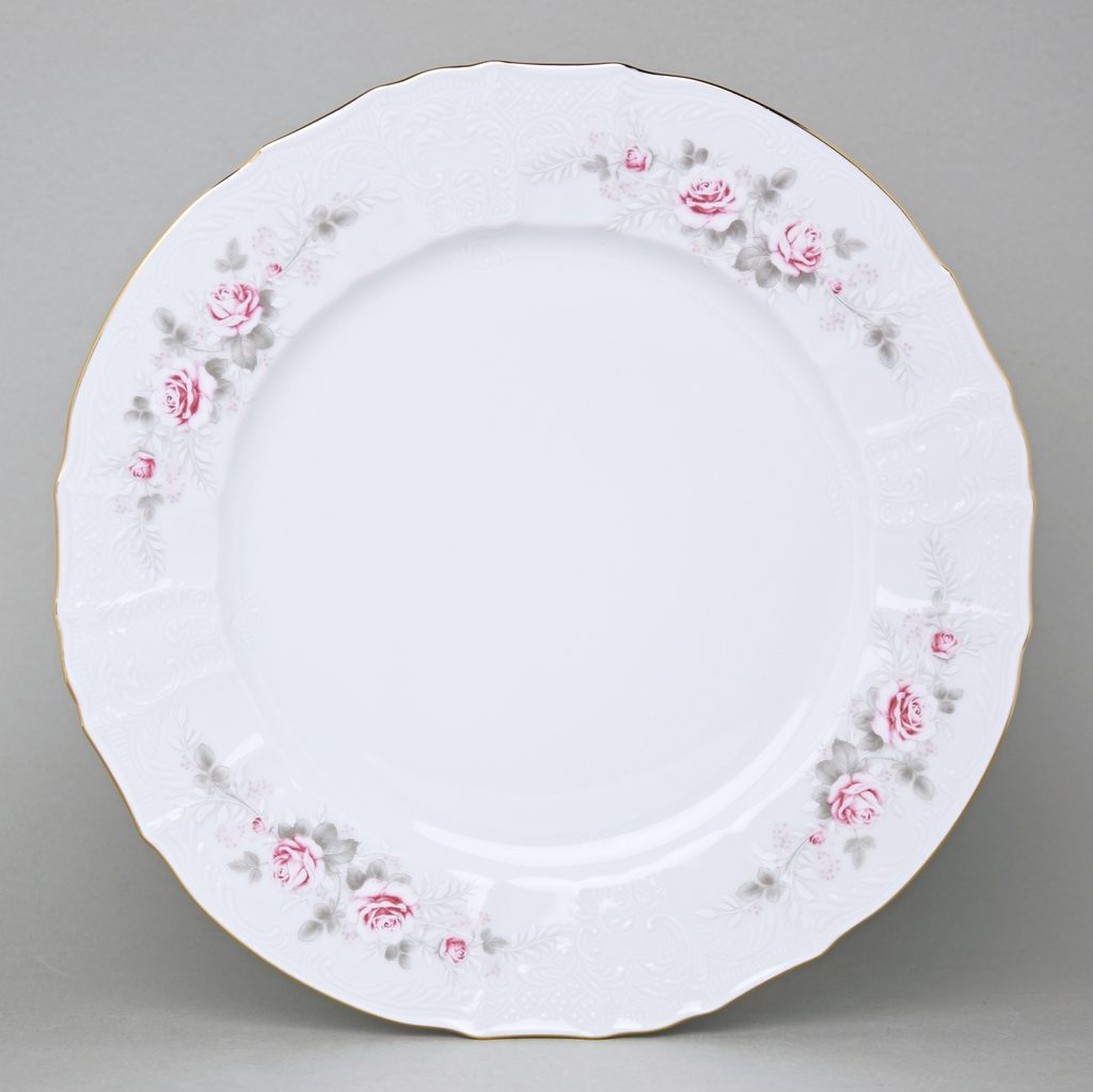 Gold line: Dish round flat 30 cm, Thun 1794 Carlsbad porcelain, BERNADOTTE roses